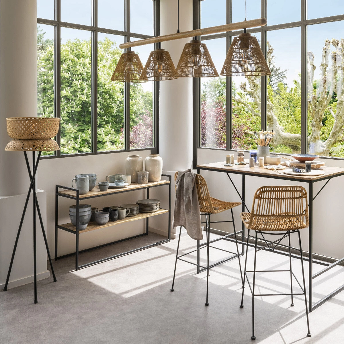 Barový rozkládací stůl Edena od značky Atmosphera je stylový loftový nábytek o rozměrech 115×98×70 cm, vyrobený z přírodního akáciového dřeva a černého kovu. Tento obdélníkový barový stůl je skvělou volbou do kuchyně nebo jídelny – díky rozkládací funkci snadno přizpůsobíte prostor aktuálním potřebám a počtu hostů. Spojení pevné kovové konstrukce s krásnou, polomatnou deskou z akácie dělá z modelu Edena výjimečné spojení odolnosti a moderního designu.
