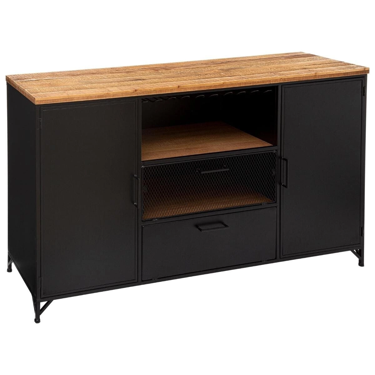 Industriální komoda Cierna je určena pro ty, kteří si cení výrazných interiérů a praktických řešení. Její jednoduchý tvar, černé lakované čelní plochy a vysoké kovové nožky dokonale zapadají do oblíbeného loftového stylu. Nábytek působí velmi lehce, nepůsobí těžce v prostoru a zároveň přináší do interiéru moderní a lehce surový vzhled. Deska v přirozené barvě dřeva jemně narušuje jednobarevnost a nabízí možnost vystavení rostlin, lamp nebo dekorací.