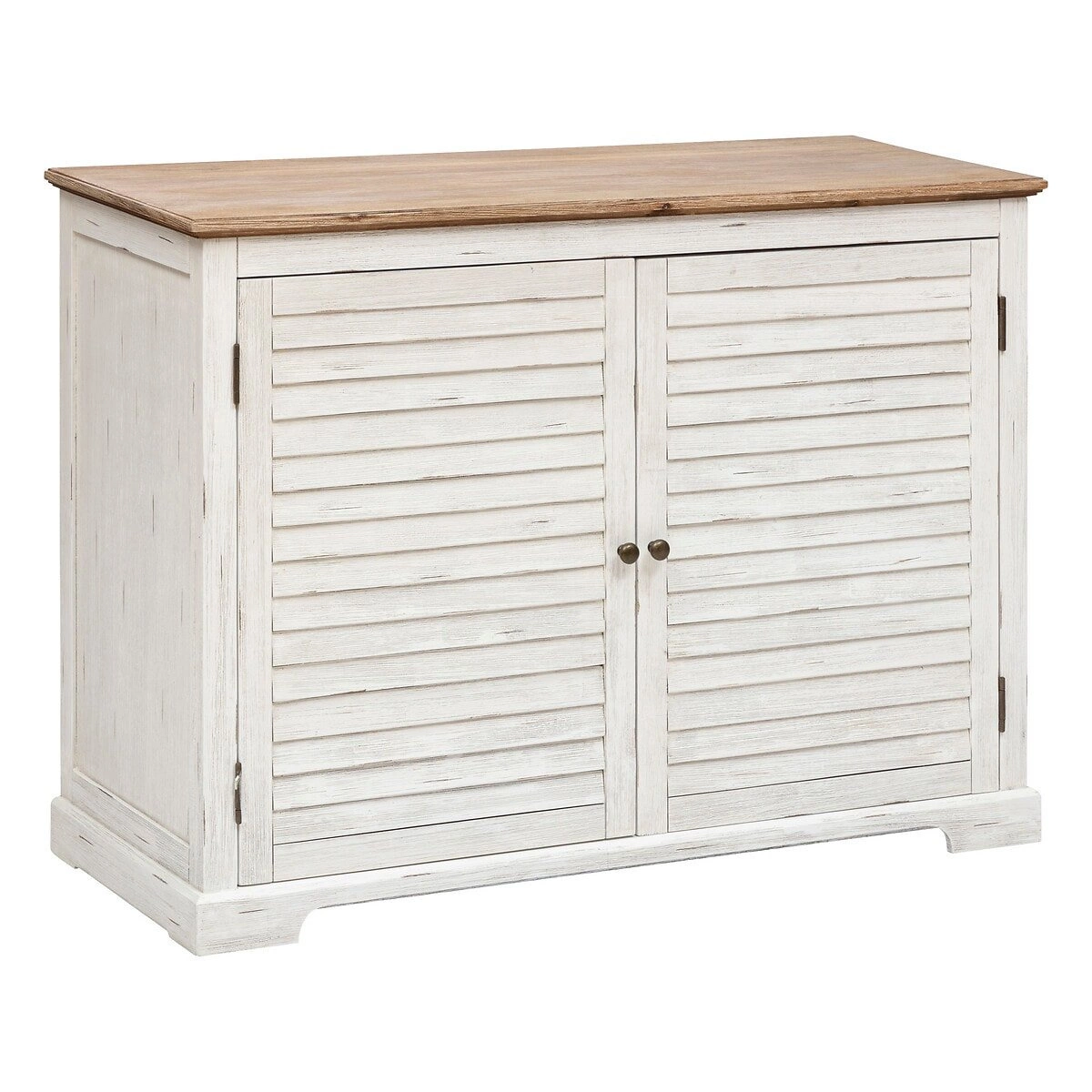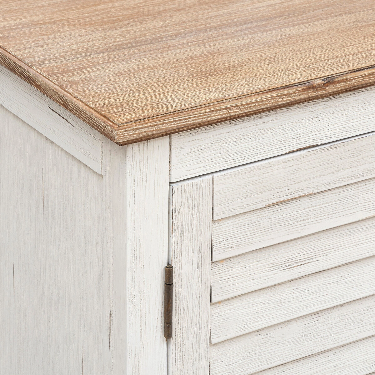 Bílá komoda Olbia 110 cm v provensálském stylu s přírodní dřevěnou deskou do obývacího pokoje Atmosphera