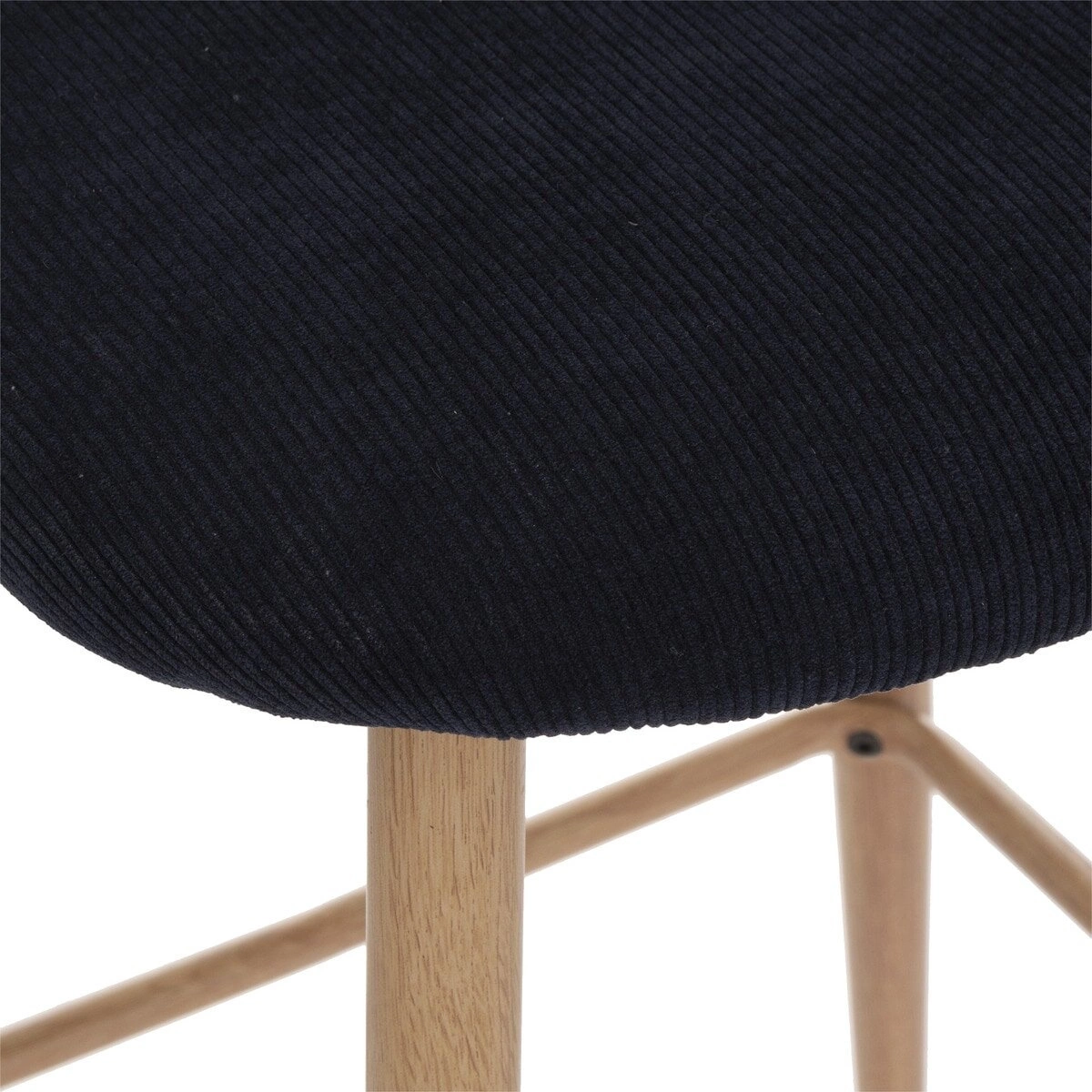 Čalouněný barový stoliček Celeste od značky Atmosphera je spojením výrazného loftového stylu a funkčnosti, která perfektně zapadne do kuchyně, jídelny nebo k modernímu kuchyňskému ostrůvku. Zaujme hlubokým, tmavě modrým sedákem s matným povrchem a stabilní kovovou podnoží v přírodním odstínu. Vysoké opěradlo, opěrka na nohy a pohodlná výška sedáku (75–77 cm) dělají z tohoto modelu ideální volbu jak pro každodenní stolování, tak i delší posezení u barového pultu.