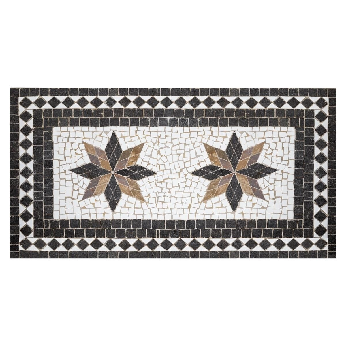 Deska stolu Kipos je skutečnou ozdobou každého prostoru: mozaika z keramiky v odstínech bílé, hnědé a černé dodává umělecký vzhled a současně se snadno udržuje. Obdélníkový tvar desky nabízí pohodlné místo až pro 6 osob, což umožňuje komfortní stolování i práci na notebooku. Moderní styl a originální povrchová úprava desky dělají z tohoto modelu ústřední prvek každého interiéru.