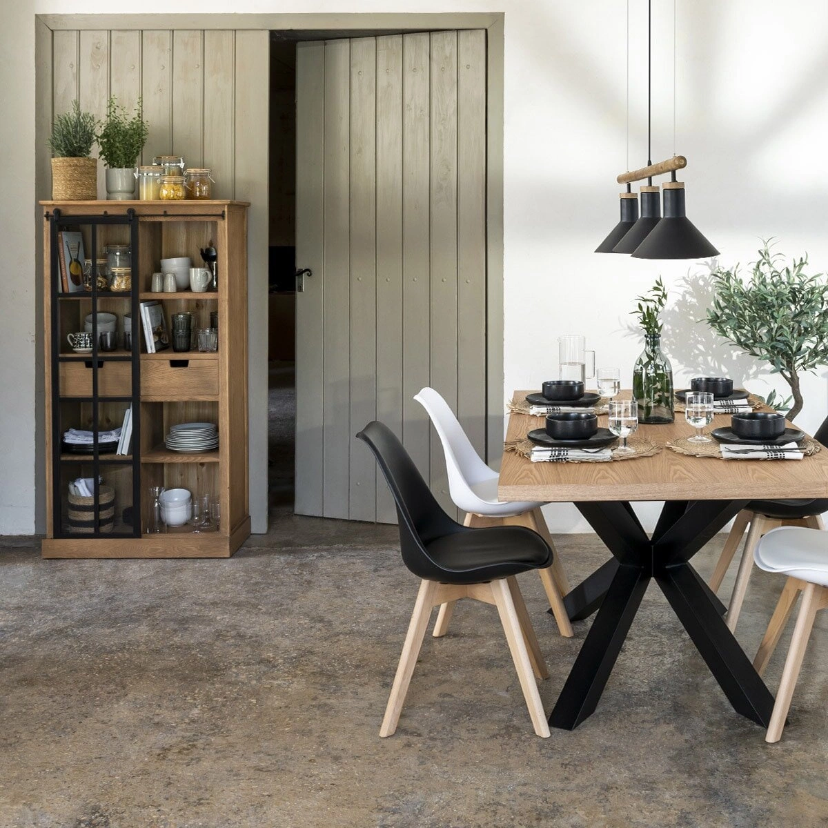 Knihovna Danik z jedle od společnosti Atmosphera je kus nábytku, který připomíná staré spižírny, ale je navržen v moderním stylu. Díky němu bude každá místnost působit tepleji a útulněji. Ať už ji umístíte do kuchyně, obývacího pokoje nebo jídelny, vždy bude působit stylově a elegantně. Navíc je tato knihovna nejen praktickým úložným nábytkem, ale také krásným dekorativním prvkem. Její posuvná dvířka umožňují snadný přístup do interiéru a pět úrovní polic vám umožní uspořádat prostor podle vašich potřeb.