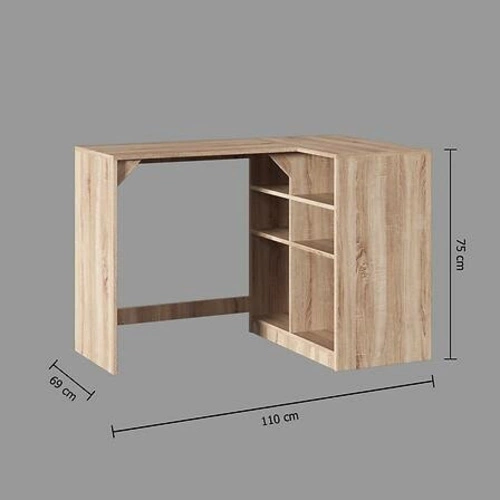 Víceúrovňové police v rohovém psacím stole Kali umožňují optimálně využít každý centimetr prostoru. Snadno na nich uspořádáte šanony, učebnice či dekorace – vše budete mít po ruce bez nutnosti sahat po dalším nábytku. Deska s přírodním povrchem poskytuje pohodlné místo pro práci na počítači, psaní nebo kreativní činnosti, a rohová konstrukce dovoluje umístit stůl jak do rohu místnosti, tak jako ústřední prvek domácí kanceláře.