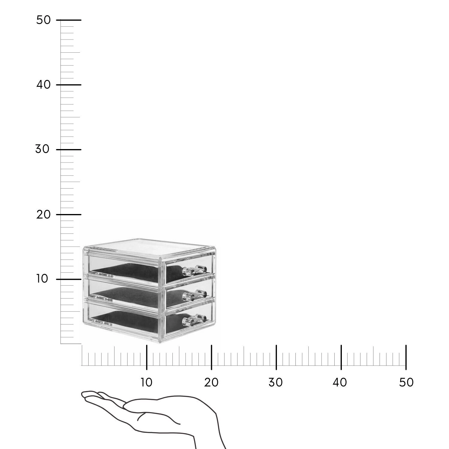 Organizer na šperky Selena byl navržen pro ty, kteří si cení pořádku a estetiky. Tři zásuvky umožňují přehledné uložení náušnic, prstenů, náramků a drobných doplňků, takže každý šperk má své místo. Průhledná konstrukce umožňuje okamžitě vidět obsah bez nutnosti hledání v jednotlivých přihrádkách. Díky rozměrům 15,3 cm šířky, 10,7 cm hloubky a 12,1 cm výšky se organizer snadno vejde na každý toaletní stolek nebo do zásuvky komody.