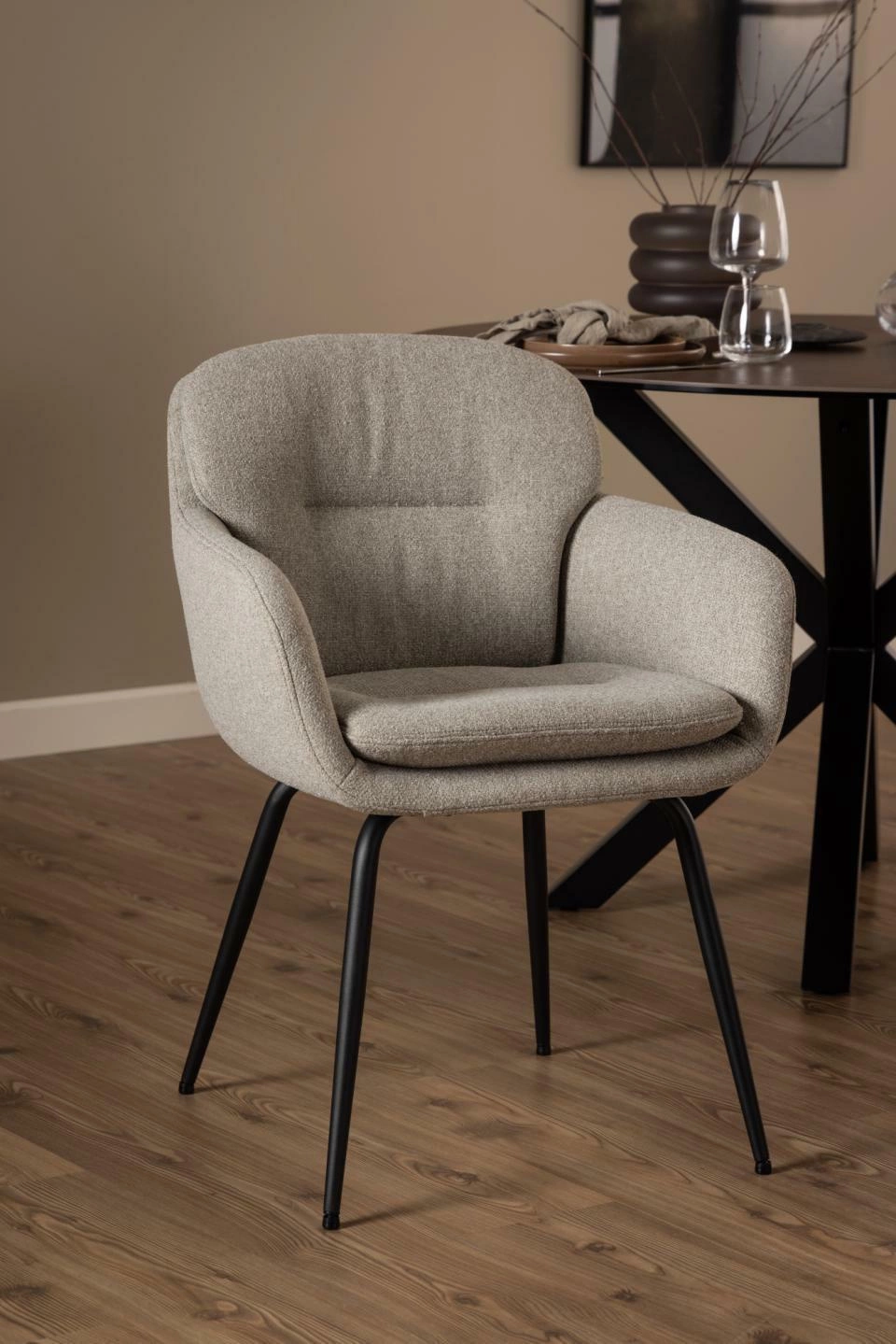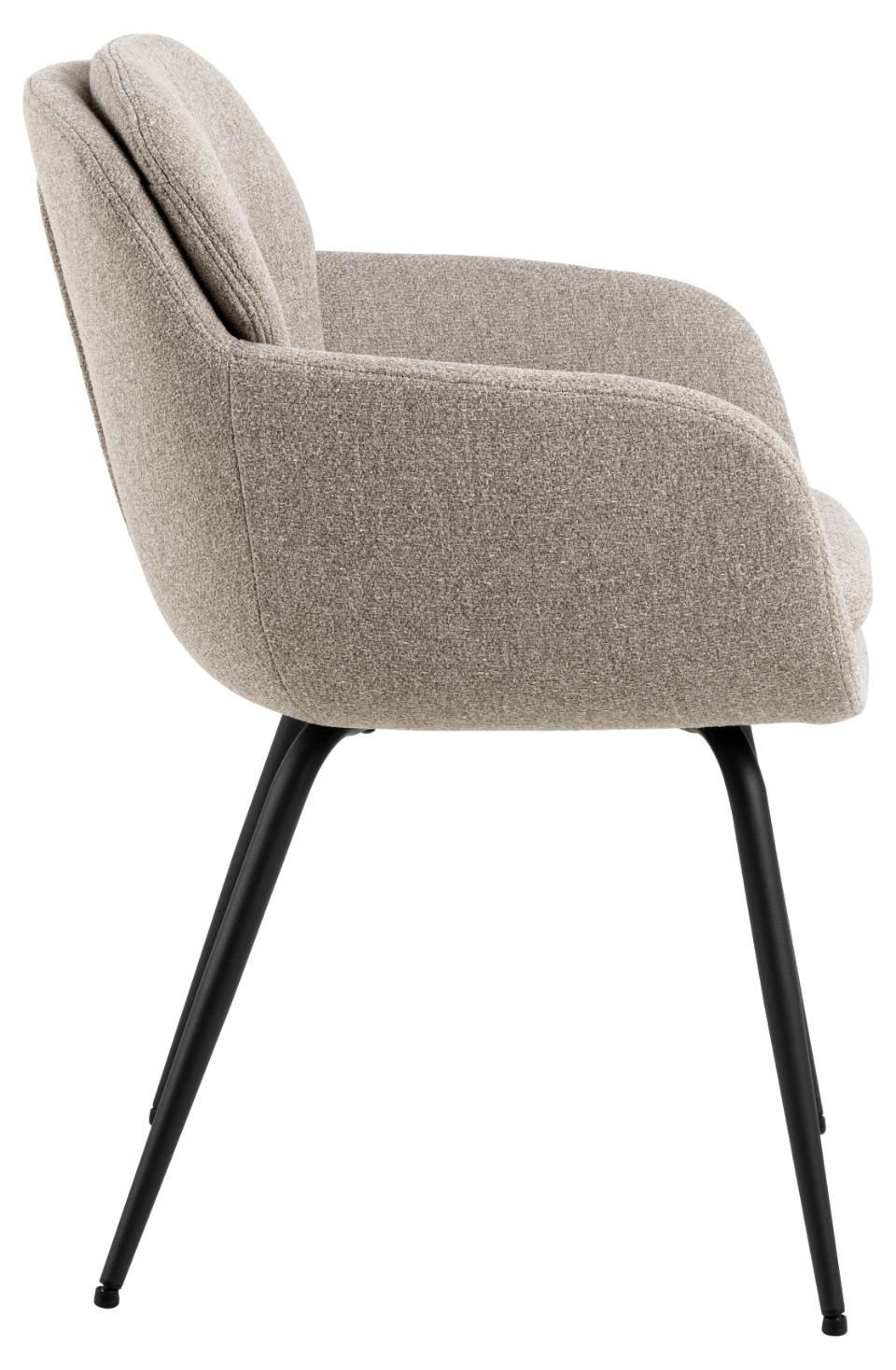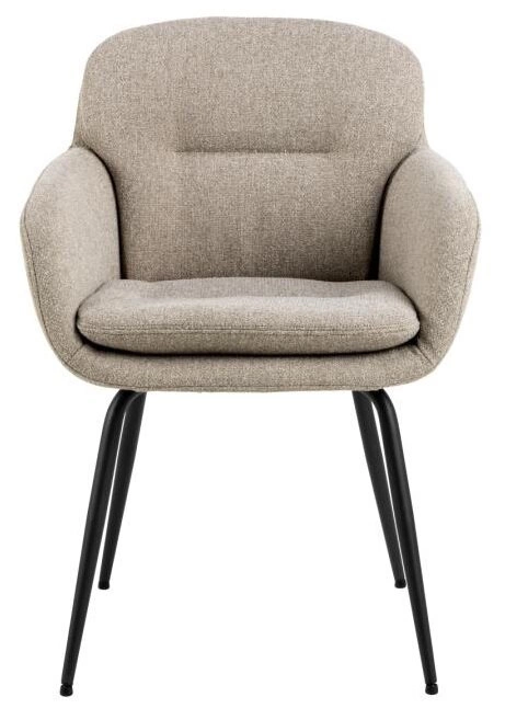 Čalouněná židle Dora od značky Actona je spojením jemné elegance a praktického využití, navržená pro náročné interiéry. Béžové čalounění, pohodlné područky a černá kovová podnož dělají z tohoto modelu ideální volbu do moderní jídelny nebo obývacího pokoje. Díky širokému sedáku (43 cm) a ergonomicky tvarovanému opěradlu nabízí vysoký komfort při každodenním stolování i delších setkáních s rodinou a přáteli.