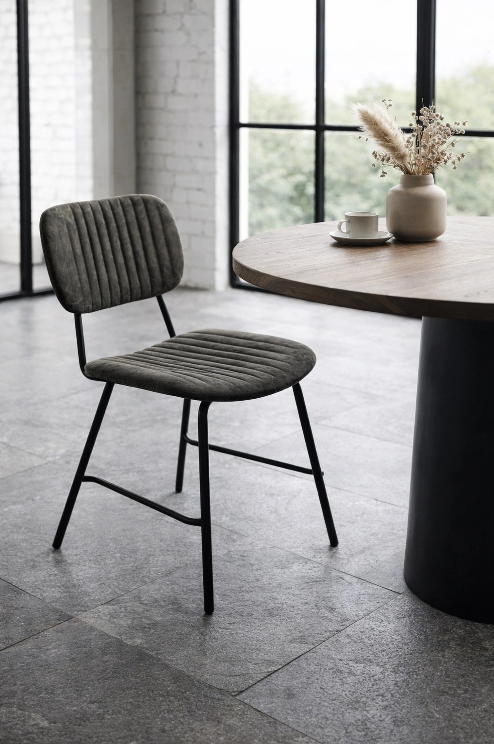 Židle Taylor Intesi se vyznačuje jednoduchými, geometrickými liniemi a kombinací šedé a černé barvy, což dokonale zapadá do aktuálních trendů moderního bydlení. Šedé čalounění působí elegantně a zároveň neutrálně – snadno ji sladíte se dřevěným, skleněným i kovovým stolem. Štíhlé, kovové nohy s polomatným povrchem podtrhují lehkost celého kusu a zaručují dlouhou životnost i odolnost při každodenním používání.