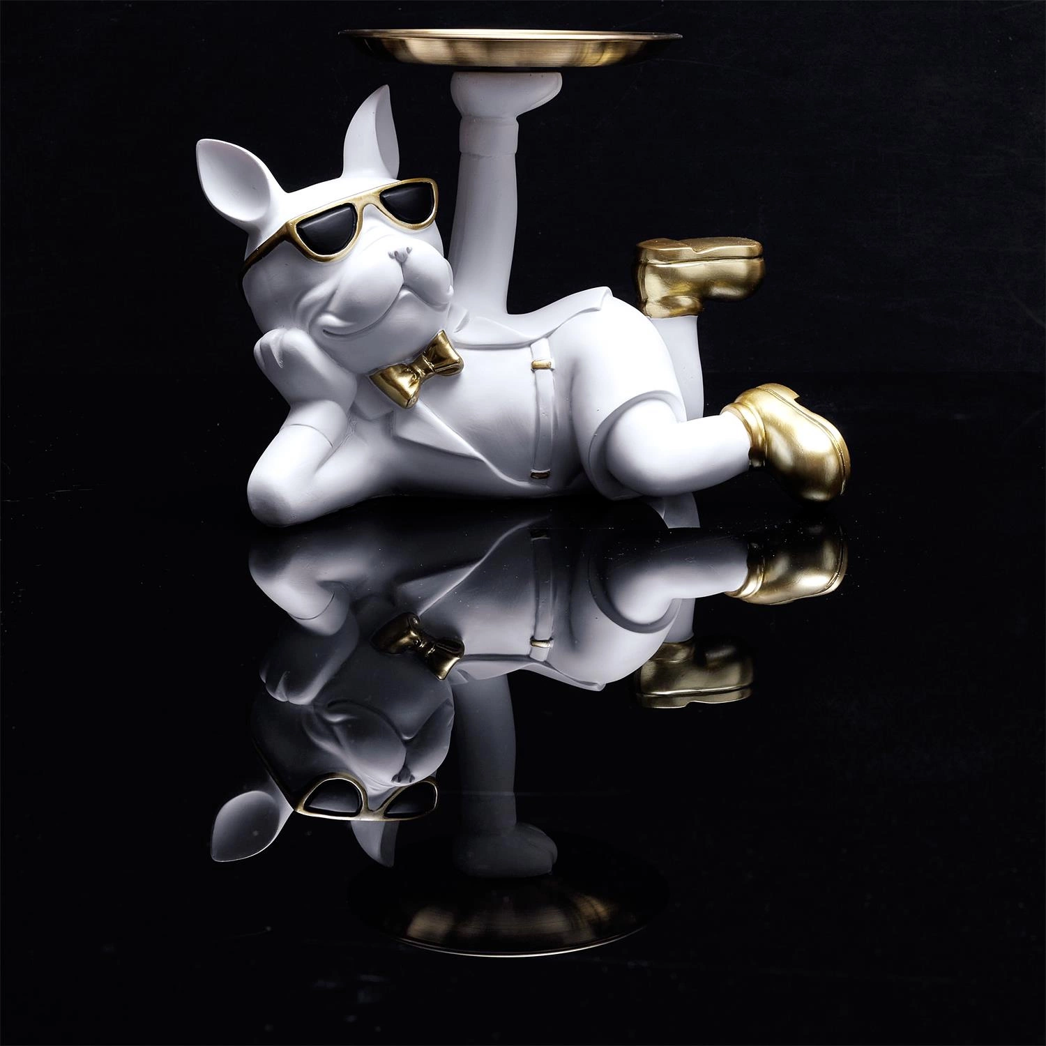 Dekorační soška buldočka s tácem bílá moderní do obýváku nebo jako dárek Intesi