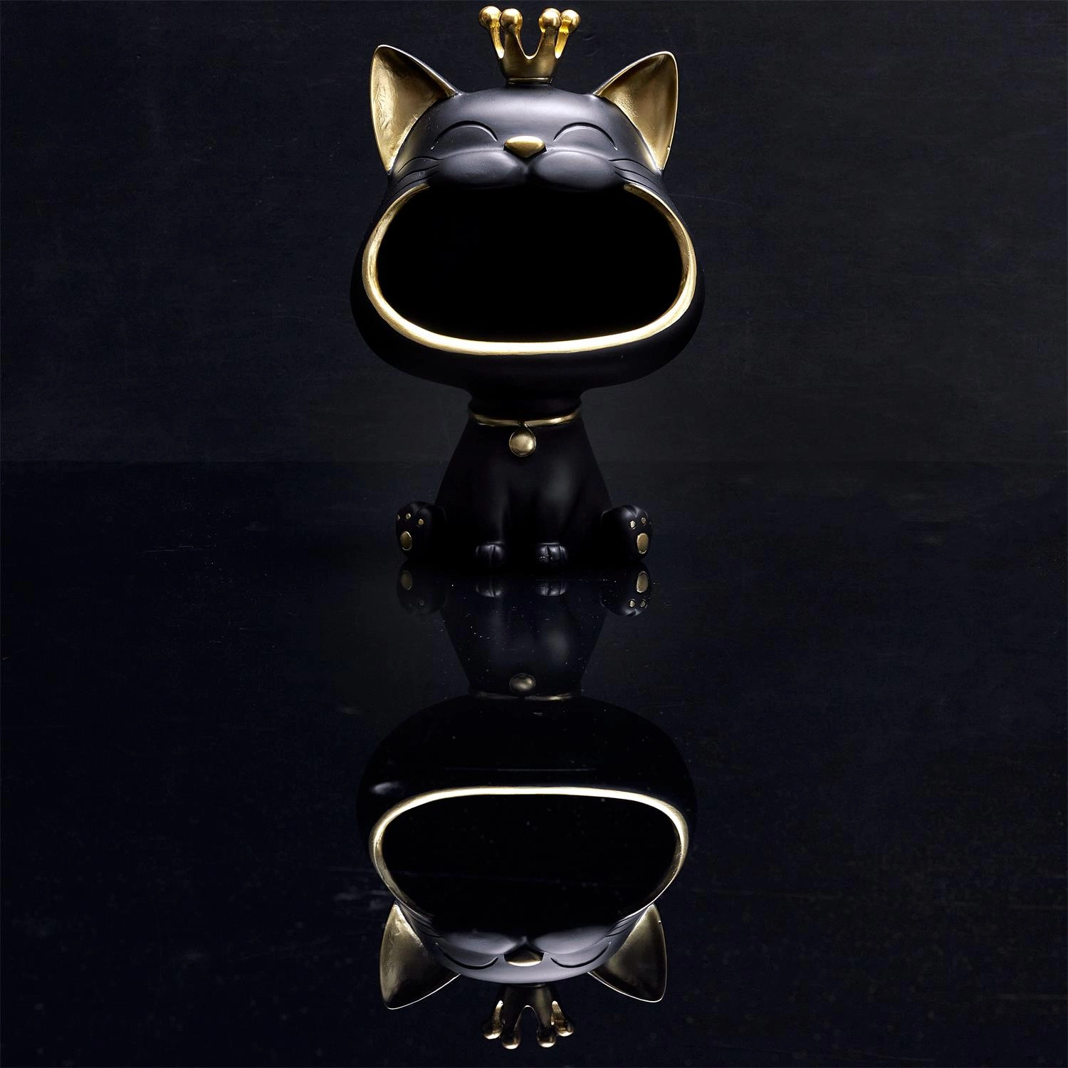 Dekorační figurka kočky glamour v černo-zlatém provedení Intesi je spojením výrazného stylu a praktické funkčnosti. Vyrobena z odolného materiálu, zaujme elegantním černo-zlatým povrchem a výškou 25,5 cm, díky které skvěle vynikne jak na komodě, tak na polici. Tento jedinečný dekorační prvek nejen ozdobí váš interiér, ale také nabízí nenápadné místo pro vaši oblíbenou bižuterii či drobnosti.