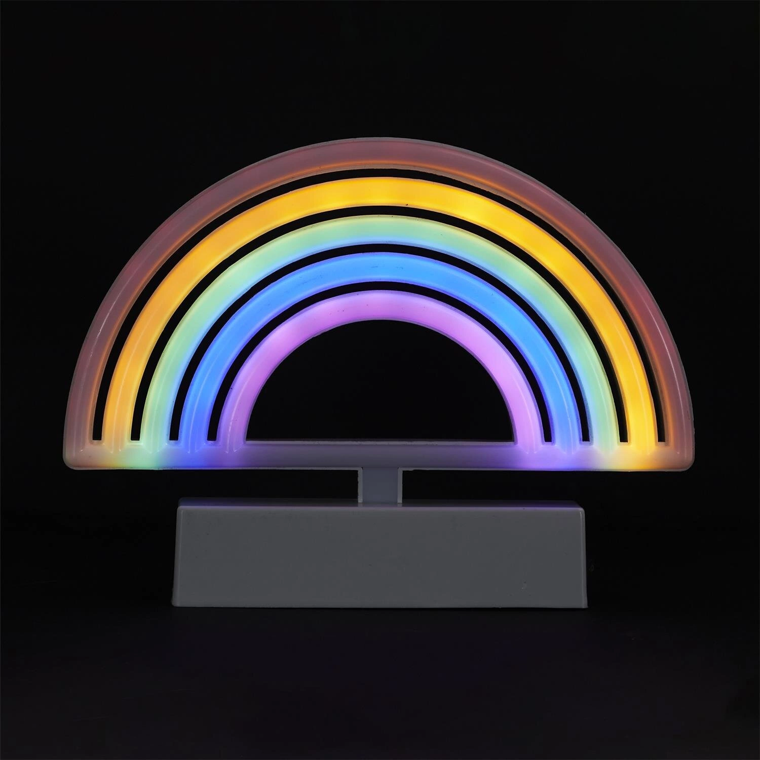 LED noční lampička Rainbow značky Intesi je moderní, bezdrátová stolní lampa v bílé barvě, navržená speciálně do dětského nebo studentského pokoje. Vyrobena z odolného plastu, zaujme kompaktními rozměry (výška 16 cm, šířka 22 cm, hloubka 3 cm) a efektním světelným motivem duhy. Díky napájení na baterie AA není potřeba připojení k elektrické síti – lampičku můžete umístit přesně tam, kde ji nejvíce potřebujete.