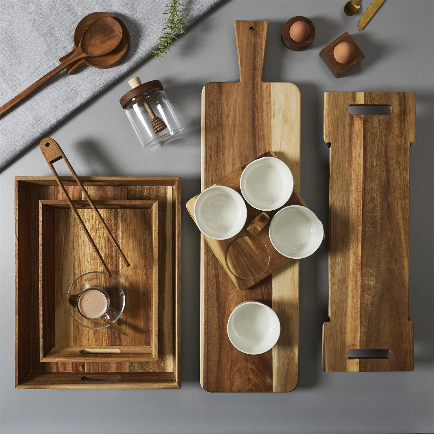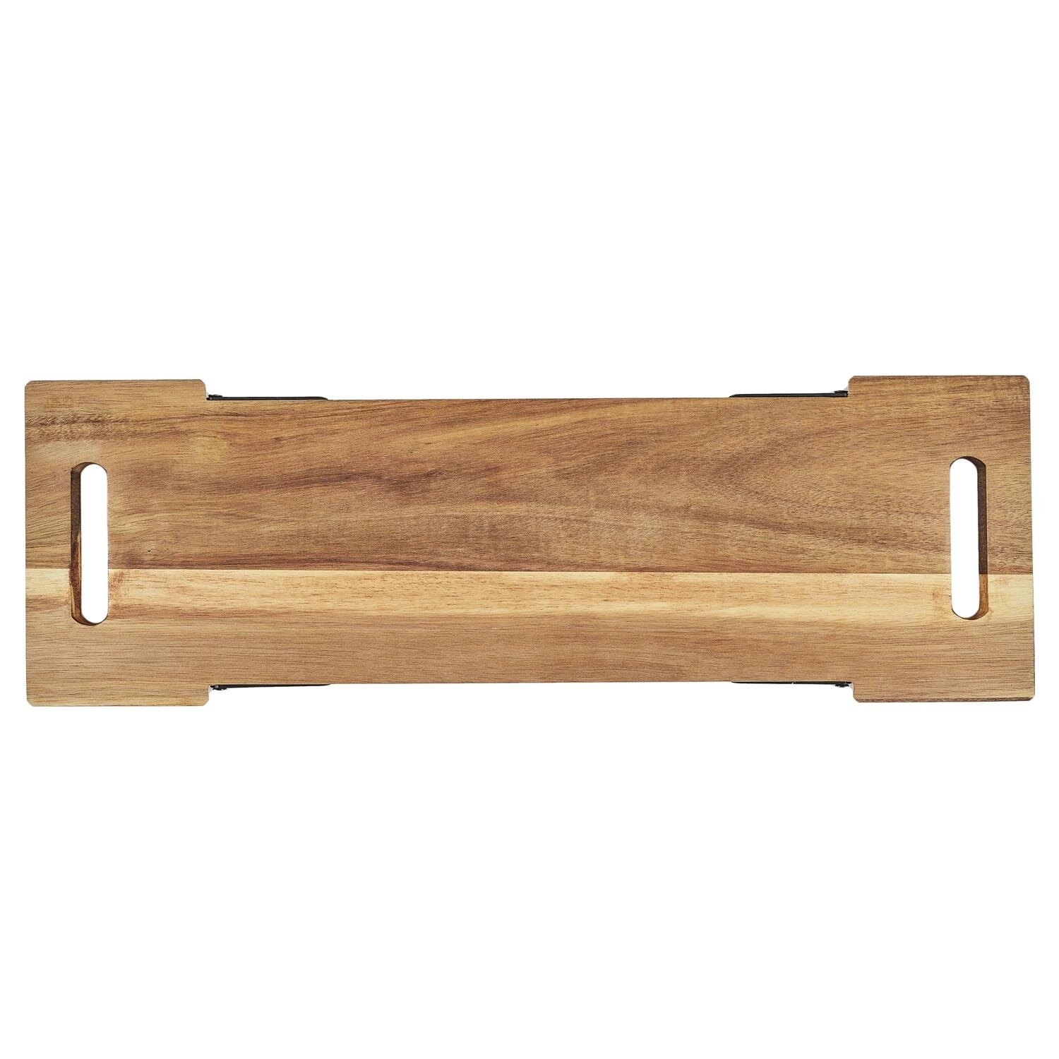 Přírodní povrchová úprava z akáciového dřeva vnáší do interiéru teplo a organický nádech, čímž podtrhuje charakter každého prostředí. Kovový podstavec o výšce 7 cm a hloubce 18 cm zajišťuje nejen stabilitu, ale dodává desce také moderní nádech, díky němuž se hodí do různých stylů interiérů - od loftových přes skandinávské až po klasičtější prostory. Je to dokonalý způsob, jak dodat každodennímu prostoru nádech luxusu.
