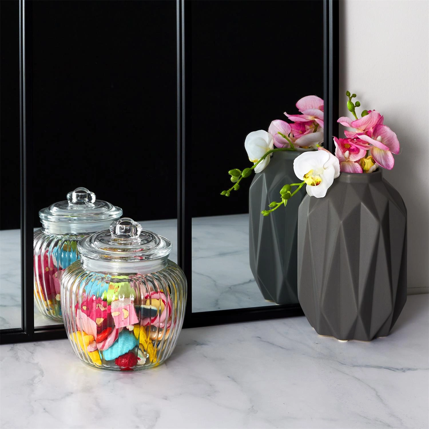 - Průhledné sklo odhaluje obsah a dodává kouzlo každému interiéru