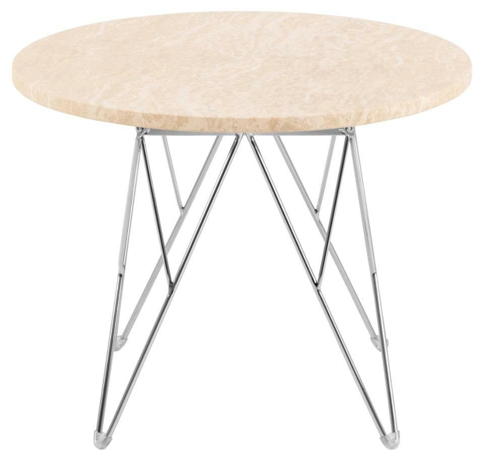 Kulatý konferenční stolek Prunus byl navržen pro milovníky moderních interiérů, kteří ocení přírodní materiály a nadčasovou eleganci. Deska o průměru 55 cm je vyrobena z pečlivě vybraného travertinu – kamene známého svou odolností a jedinečnou strukturou. Každý kus je originál a jemné béžové zabarvení vnáší do prostoru příjemnou útulnost. Chromovaná konstrukce se čtyřmi nohami zajišťuje stabilitu a lehkost, díky čemuž se loftový konferenční stolek Prunus perfektně hodí jak do interiérů ve stylu glamour, tak i do minimalistických či skandinávských prostor.Funkčnost a pohodlí při používání – praktický konferenční stolek do obýváku