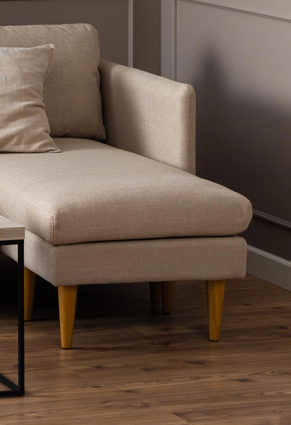 Béžové čalounění Basel v decentním, matném provedení dokonale podtrhuje přirozenost a svěžest skandinávského designu. Lehkost celé konstrukce podtrhují štíhlé područky a vysoké dubové nožky, které nejen zvyšují estetickou hodnotu, ale také usnadňují úklid pod sedačkou. Skvělá volba pro ty, kteří milují světlé, útulné interiéry a hledají harmonii mezi funkčností a stylem.