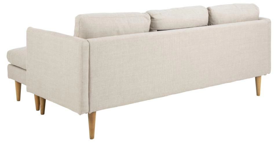 Rohová sedačka Milly od značky Actona je moderní skandinávský odpočinkový nábytek v teplém béžovém odstínu, který nadchne funkčností a lehkostí provedení. Kompaktní rozměry 201×132×84 cm zaručují, že perfektně zapadne jak do menšího obývacího pokoje, tak do prostornějšího interiéru. Klíčovou předností je oboustranný lenoška, díky které snadno přizpůsobíte uspořádání sedačky aktuálním potřebám nebo změnám v interiéru. Celá konstrukce stojí na vysokých, kuželovitých nožkách z přírodního dubového dřeva, což podtrhuje skandinávský styl a usnadňuje úklid pod nábytkem.