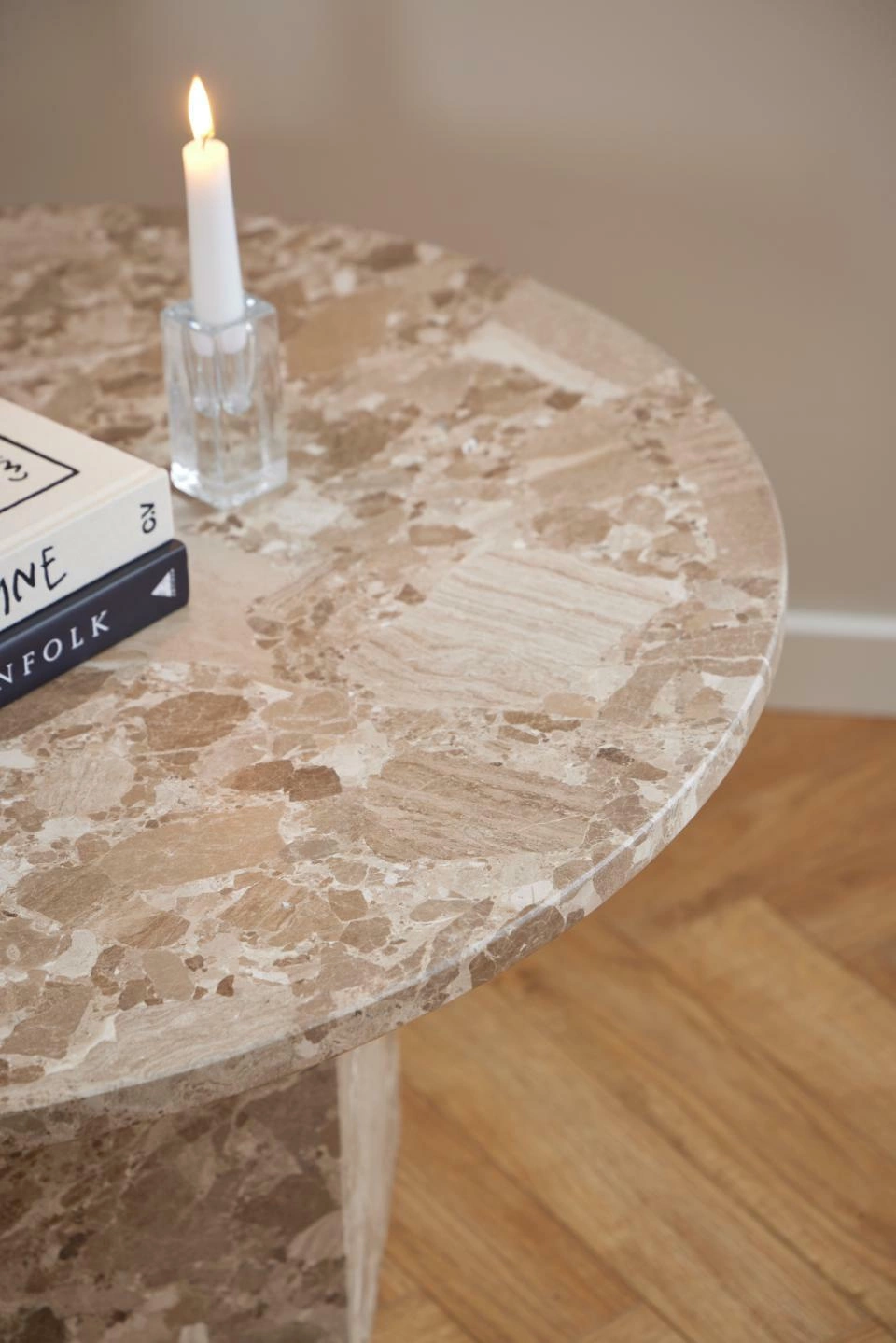 Kulatý konferenční stolek Naxos mramorový hnědý 80 cm Actona – luxusní prvek pro moderní obývací pokoj