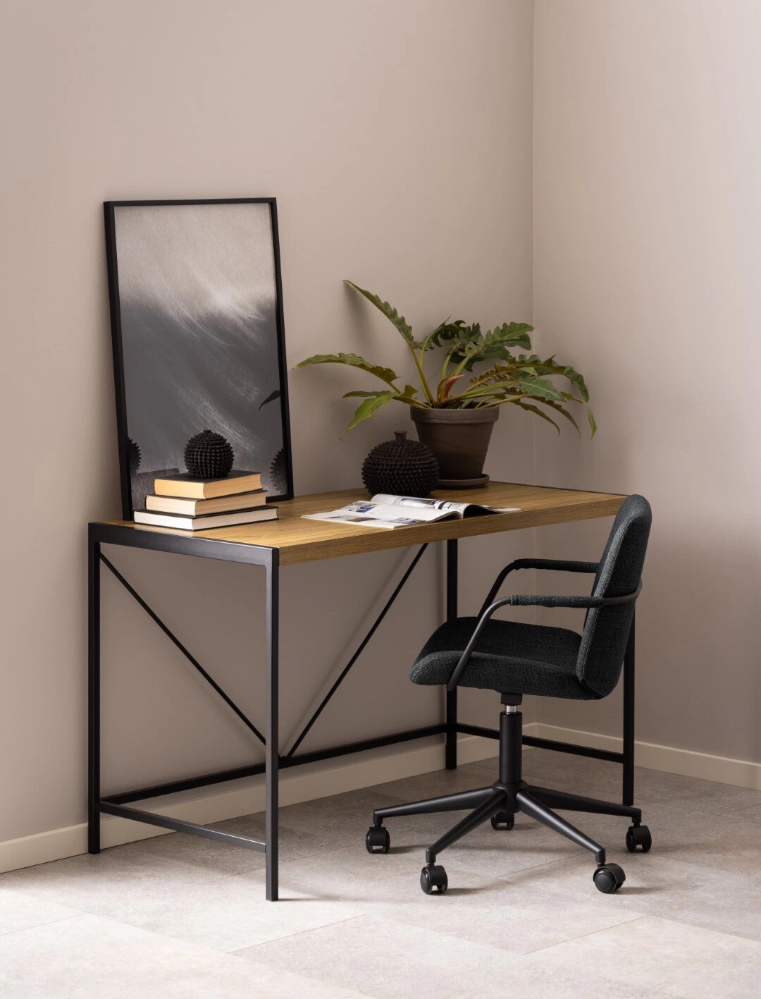 Psací stůl Bahamas skvěle zapadne do moderních loftových interiérů i minimalisticky zařízených prostor. Přírodní odstín pracovní desky vnáší do místnosti teplo, zatímco černá ocelová konstrukce zvýrazňuje industriální charakter nábytku. Toto spojení dělá ze stolu nejen praktické místo pro práci, ale také stylový prvek vybavení pracovny, studentského pokoje nebo ložnice.