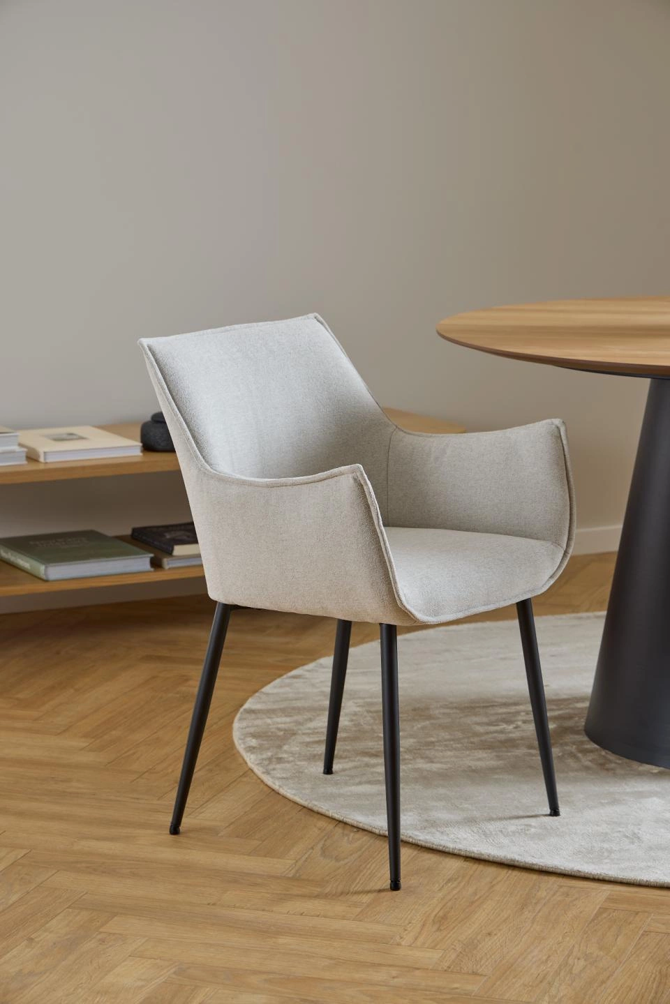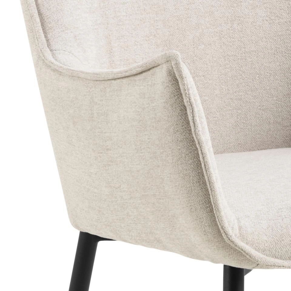Čalouněná židle Bonita od značky Actona je kombinací moderního designu, pohodlí a nadčasové elegance. Béžová, měkká látka v kontrastu s černou kovovou základnou a pohodlnými područkami tvoří ideální volbu do jídelny, obývacího pokoje nebo kuchyně. Šířka 56 cm a optimální výška sedáku 47 cm zajišťují komfort i při delším sezení u stolu.