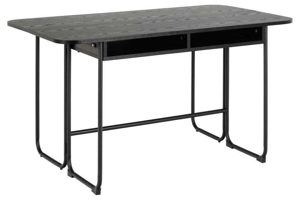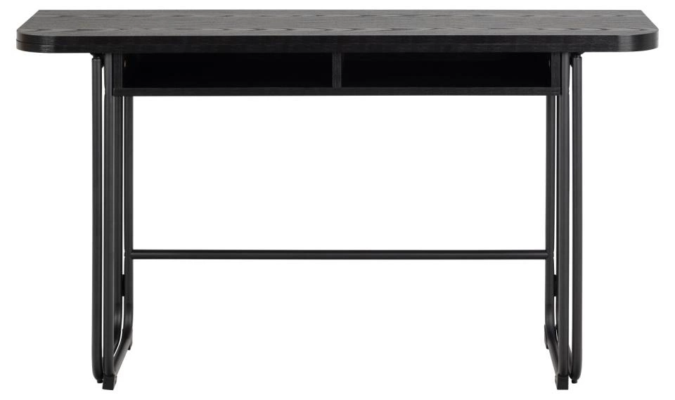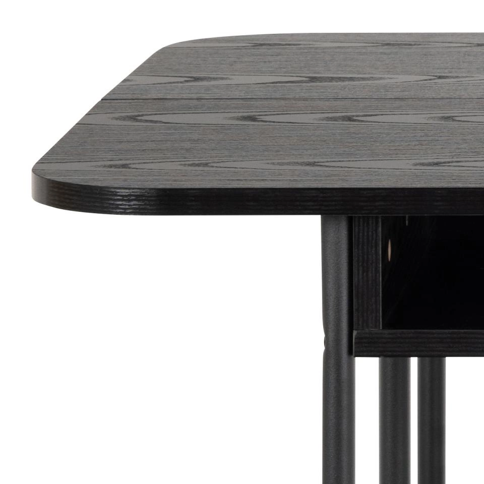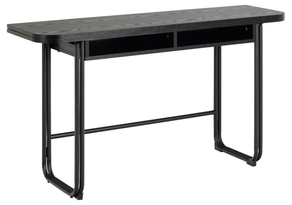 Rozkládací stůl Darlington od značky Actona je minimalistický kus nábytku do jídelny i obývacího pokoje, který spojuje industriální styl s moderní funkčností. Obdélníková deska o šířce 140 cm a hloubce od 40 do 80 cm je vyrobena z odolné matné černé melaminové desky, která snadno odolá každodennímu používání. Dvě praktické police pod deskou a pevná ocelová konstrukce zajišťují přehledné uspořádání i stabilitu, zatímco rozkládací mechanismus umožňuje rychle zvětšit prostor při setkáních s rodinou nebo přáteli.