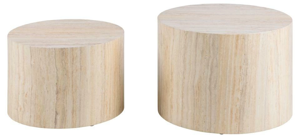 Sada dvou kulatých konferenčních stolků Dice od renomované značky Actona je ideální volbou pro ty, kteří hledají moderní design a praktická řešení do svého domova. Desky stolů o průměru 58 cm a 50 cm jsou vyrobeny z MDF desky potažené přírodní dýhou v barvě travertinu, což dodává nábytku elegantní béžový odstín a sofistikovaný lesklý povrch. Stolky mají výšky 40 cm a 33 cm, takže je můžete libovolně kombinovat ve svém obývacím pokoji a vytvořit tak funkční i dekorativní sestavu.Objevte kulaté konferenční stolky Dice – perfektní volba do moderního interiéru