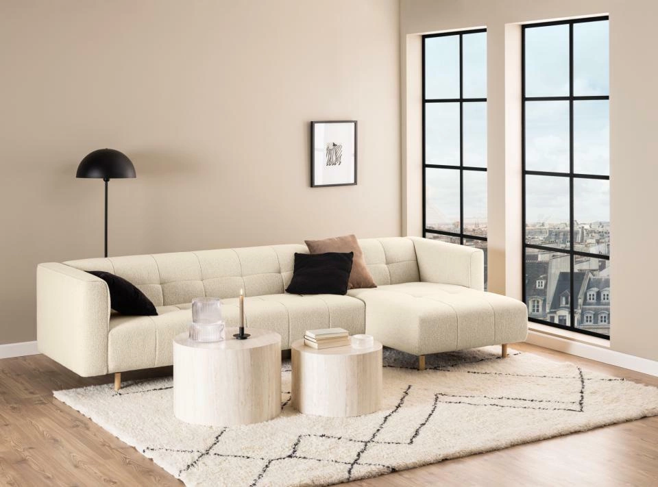Konferenční stolek Dice spojuje minimalistický styl s jemnými prvky glamour, díky čemuž skvěle zapadne do interiérů zařízených podle aktuálních trendů. Přírodní odstíny a imitace travertinu zajišťují, že sada harmonicky ladí jak s elegantními, tak industriálními či minimalistickými prostory. Kulaté desky nejen působí lehce a moderně, ale jsou i velmi praktické – poskytují pohodlný přístup ke kávě, občerstvení nebo dekoracím v jakékoliv části obývacího pokoje.Funkčnost a pohodlí – proč zvolit sadu Dice?