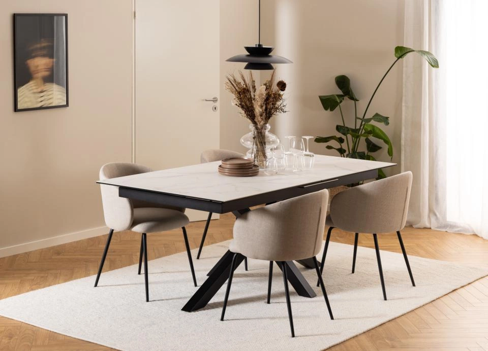 Lirra Beige Black je víc než jen židle do jídelny – je to univerzální volba pro každý moderní interiér. Díky vysokým nohám (celková výška židle 79 cm) se pod židli snadno dostane robotický vysavač, zatímco šířka 55,5 cm poskytuje pohodlí i při dlouhých setkáních. Pevná ocelová konstrukce zaručuje dlouhou životnost a příjemné čalounění Basel si uchovává svěžest a elegantní vzhled i při intenzivním používání.