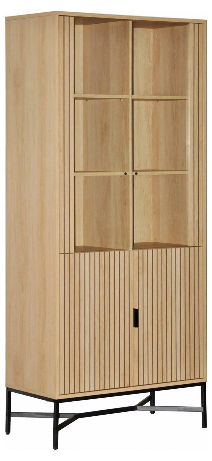 Vitrína Jaipur upoutá pozornost jemným designem a pečlivě sladěnými barvami – přírodní dub v kombinaci s černými detaily dodá interiéru moderní vzhled. Skleněné přední části umožňují stylově vystavit oblíbené předměty a čtyři praktická dvířka chrání obsah před prachem. Tento nábytek skvěle vynikne nejen v obýváku, ale také v jídelně nebo domácí pracovně.