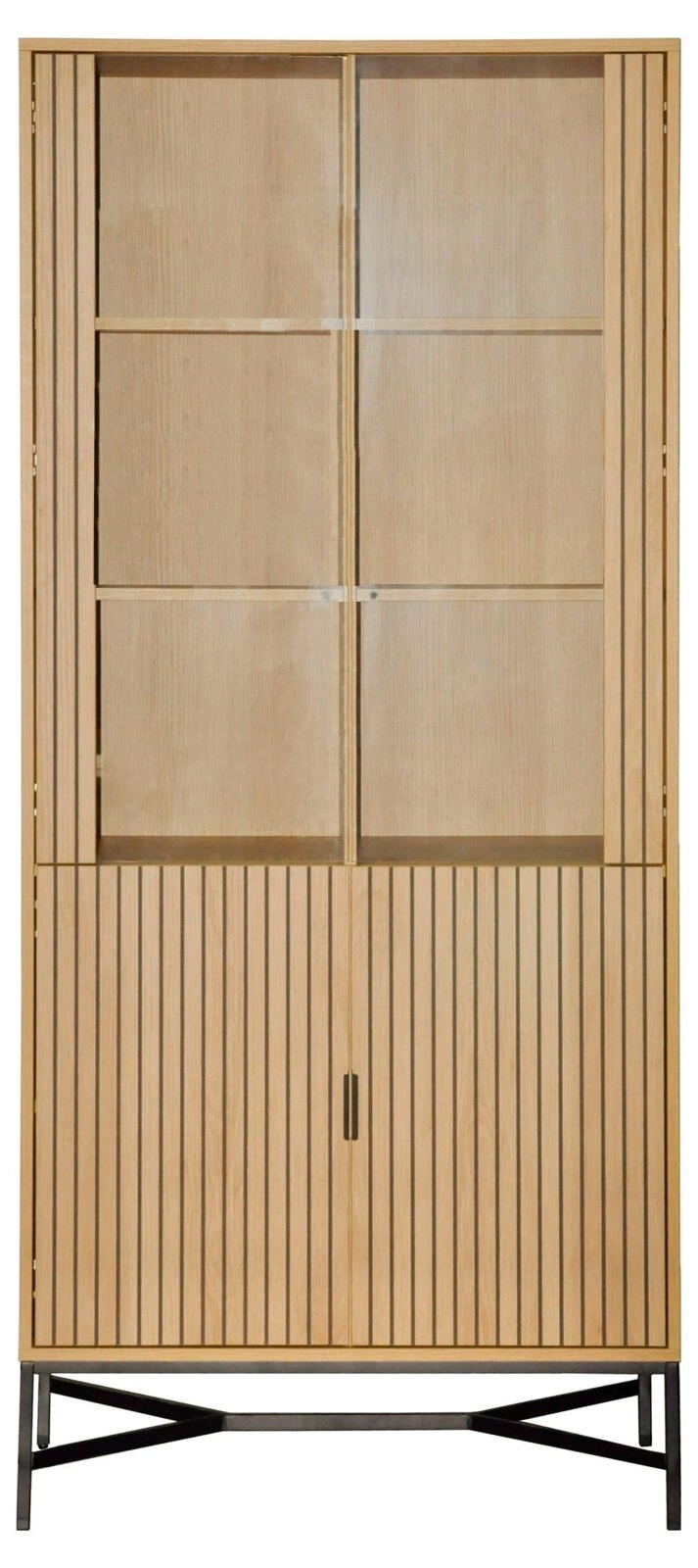 Kovová základna na čtyřech nohách zajišťuje stabilitu a lehkost tvaru, zatímco kvalitní materiály garantují dlouhou životnost. Kovové úchyty jsou nejen praktické, ale i stylově doplňují celkový vzhled. Vitrína Jaipur zapadá do moderního stylu, ale její univerzální design umožňuje snadné začlenění do různých typů interiérů.