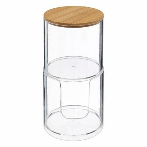 Najděte si místo pro své vatové tyčinky a vatové tyčinky v našem kontejneru Selena. Je vyroben z polystyrenu, je odolný a zároveň lehký, váží pouhých 0,22 kg. Její průhledný design vám umožní snadno identifikovat obsah, zatímco bambusové víko jí dodává elegantní vzhled. pr.Díky svým kompaktním rozměrům (9,7 cm ednice a 18,1 cm výška) nezabere tato nádoba mnoho místa a skvěle se hodí do každé koupelny.