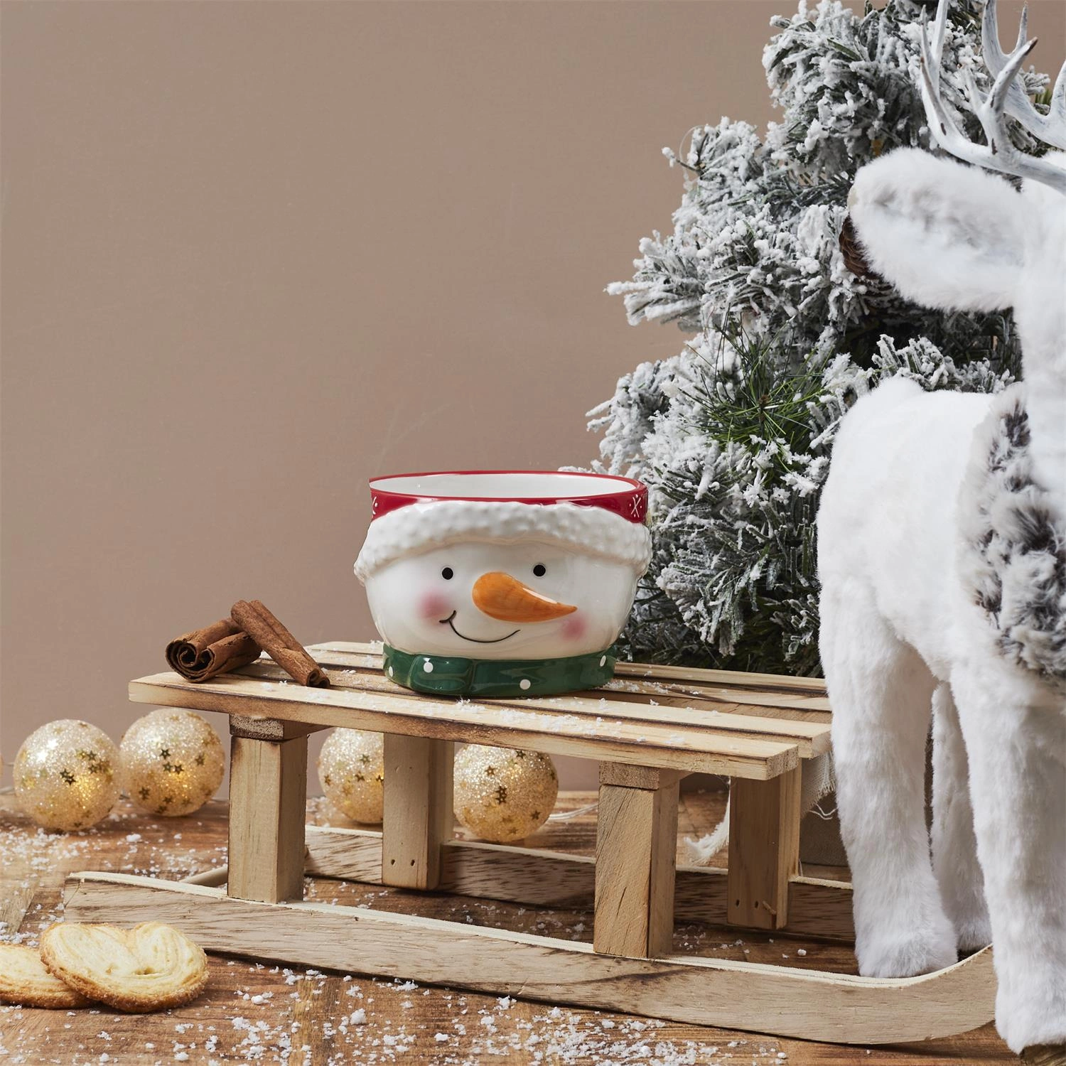 Miska Vánoční sněhulákje k dispozici ve třech provedeních a v kombinaci s ostatními miskami z kolekce vytváří harmonickou kompozici, která na stůl přinese teplo a radost z Vánoc.