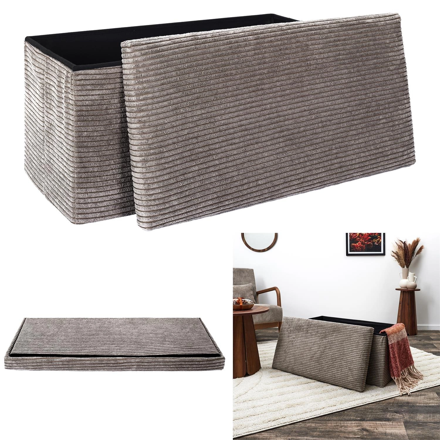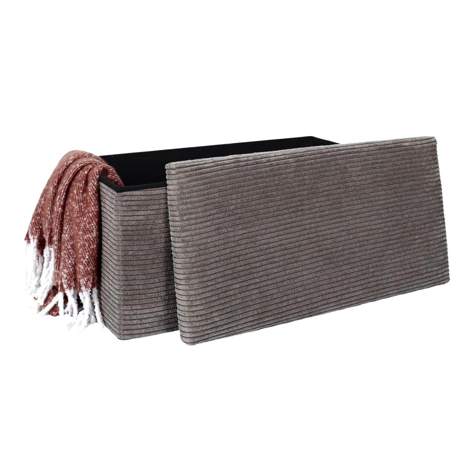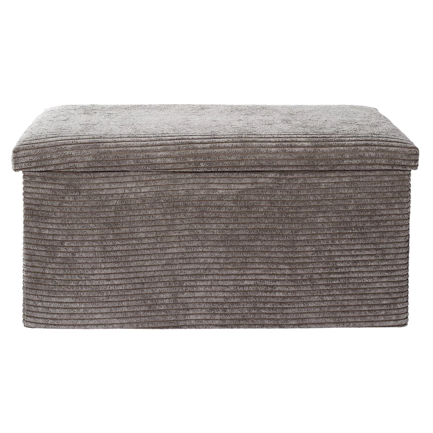 Pufa Medford skládací z manšestru se šedým potahem a úložným prostorem je nábytek, který spojuje praktičnost s moderním vzhledem. Je to ideální volba pro ty, kdo hledají pohodlnou pufu na sezení, efektivní organizaci prostoru a jemné zvýraznění stylu svého interiéru.