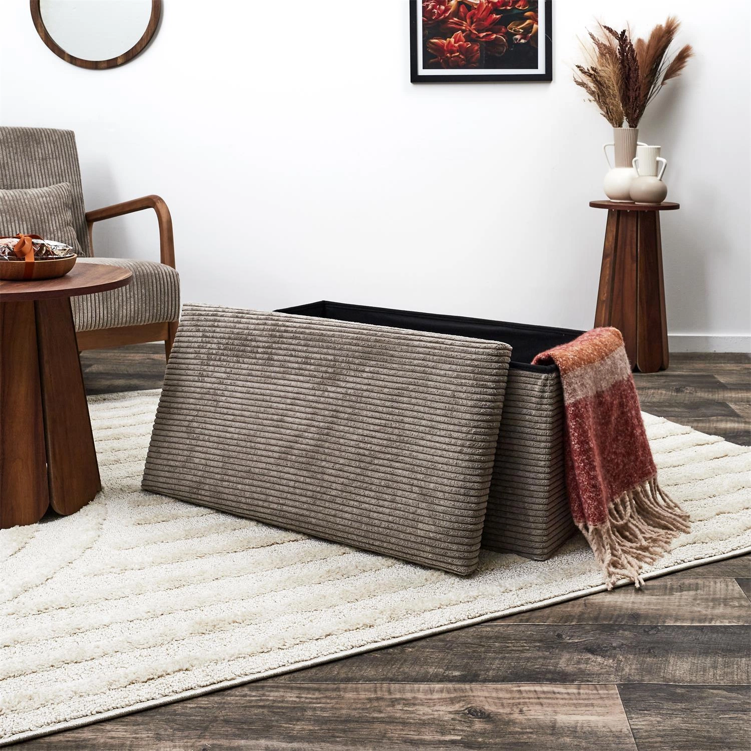 Hledáte nábytek, do kterého snadno schováte drobnosti a zároveň získáte pohodlné místo k sezení? Pufa Medford s úložným prostorem splní obě vaše přání. Díky hloubce 38 cm získáváte dostatek prostoru na sezónní obuv, textilie nebo hračky – bez kompromisů v designu. Měkký manšestr příjemný na dotek zaručuje komfort i při delším odpočinku, takže pufa se skvěle hodí jak do předsíně, tak jako přídavné sezení v ložnici.
