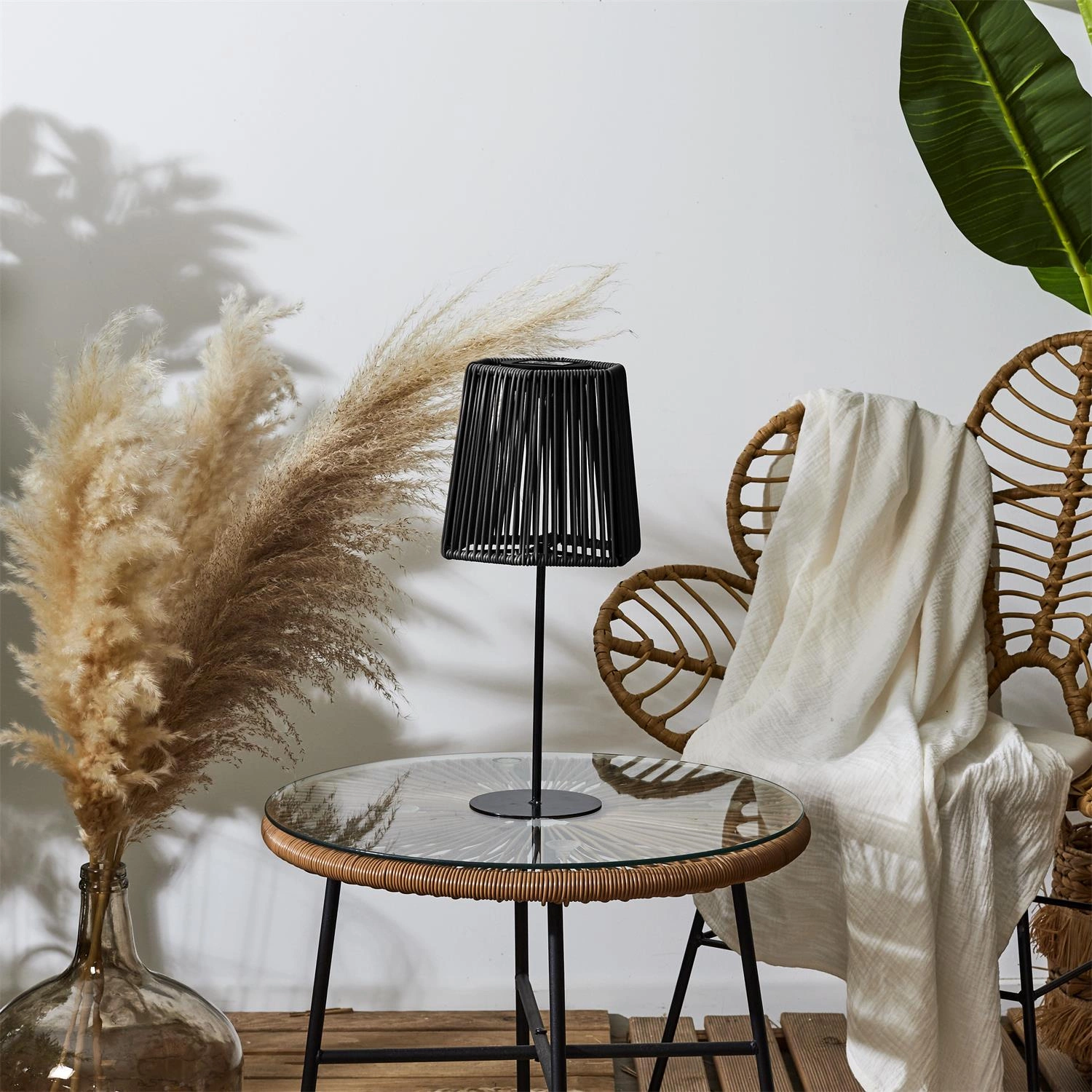 Černá LED stolní lampa Merrill skvěle zapadne do moderních venkovních prostor. Její minimalistický tvar perfektně ladí jak s industriální terasou, tak s útulnou zahradou. Díky odolnosti vůči vlhkosti a prachu (IP44) ji můžete bez obav umístit na zahradní stůl, parapet nebo mezi rostliny – bez starostí o déšť nebo vítr. Výška 40 cm a kompaktní průměr 19 cm umožňují snadné umístění lampy i na menší balkon či terasu.