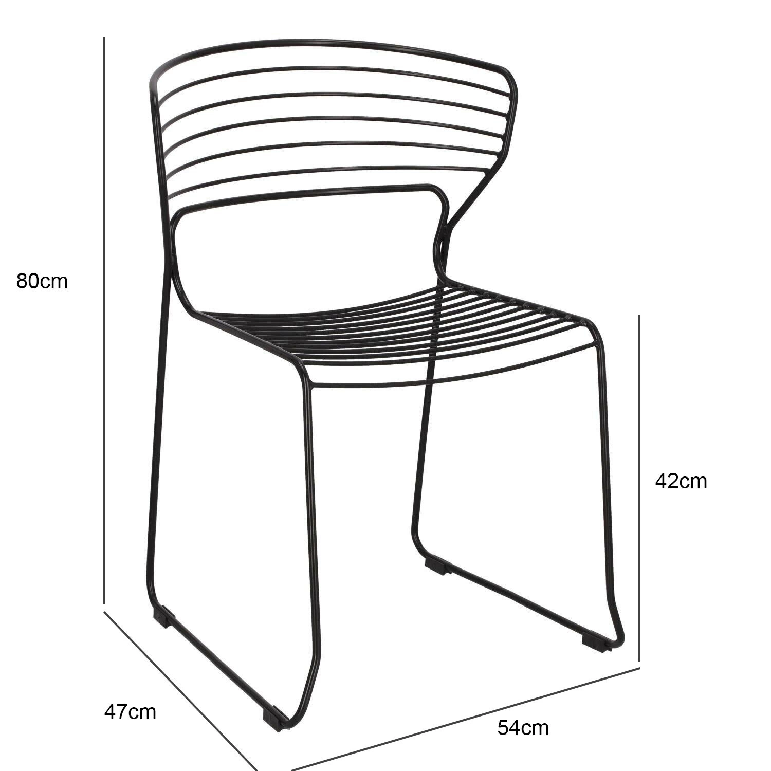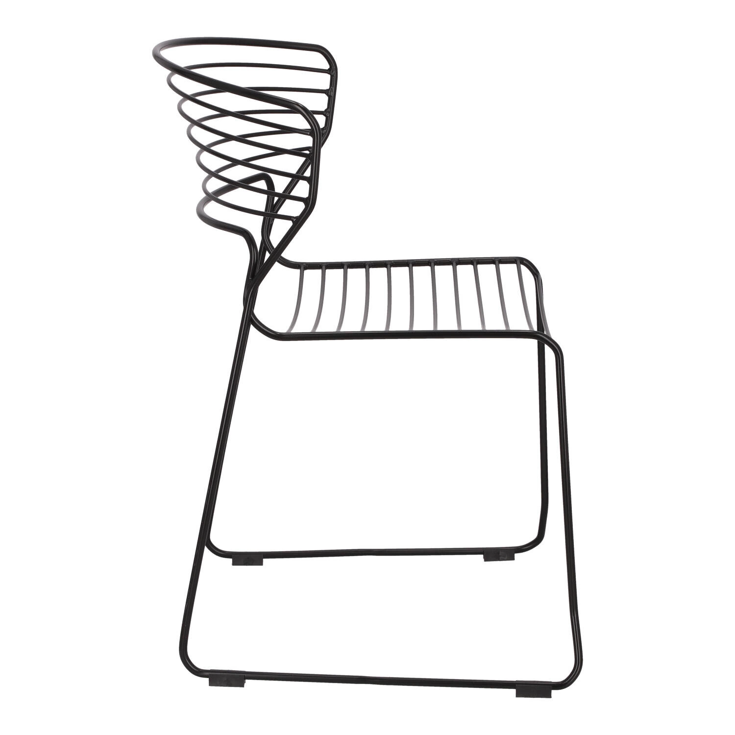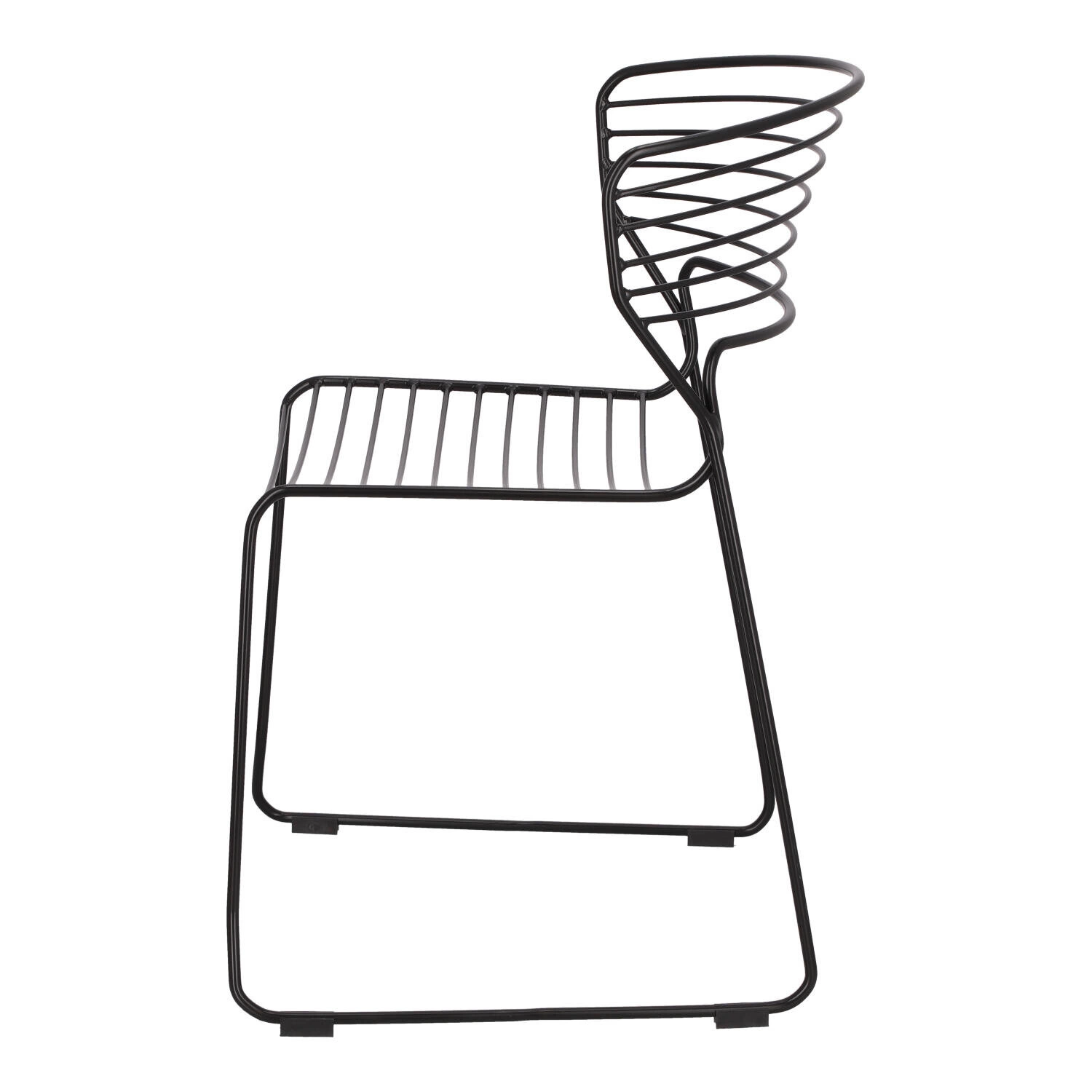 Židle Hilly od značky Intesi je moderní kus nábytku vyrobený kompletně z kovu, v elegantní černé barvě s polomatným povrchem. Její drátěná konstrukce a podnoží ve tvaru lyžin dodávají židli lehkost a výrazný, designový charakter. Díky šířce 54 cm a výšce 80 cm se tato židle skvěle hodí jak do jídelny či kuchyně, tak i do moderní kavárny nebo na terasu.