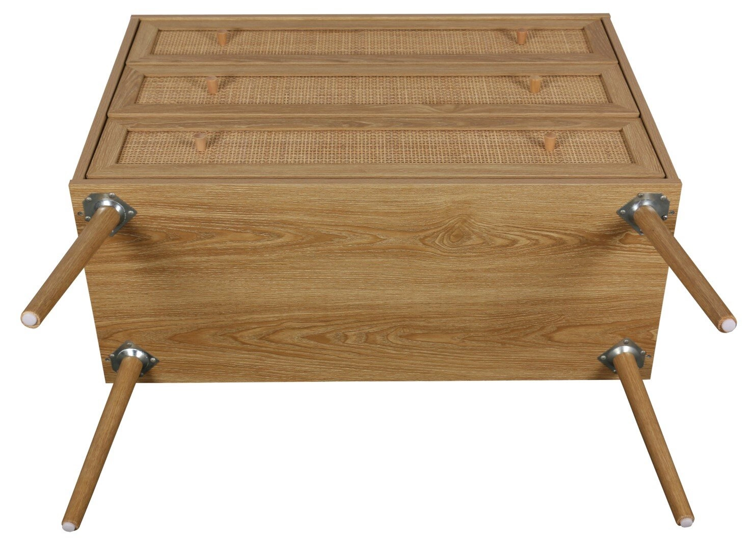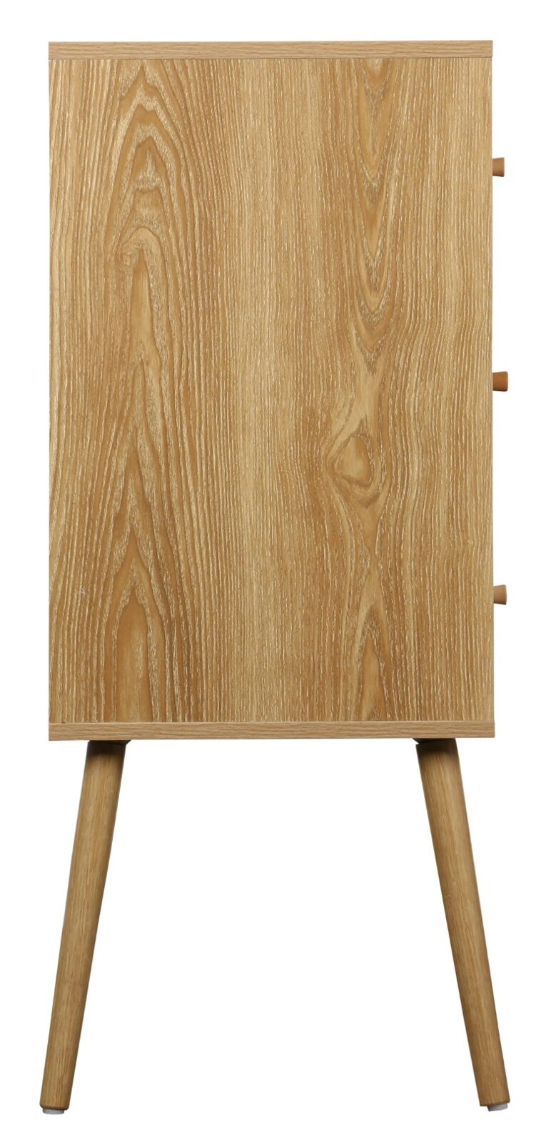 Čtyři pevné dřevěné nohy dodávají komodě Ballo vzdušný a odlehčený vzhled, zároveň výrazně usnadňují úklid pod nábytkem. Stabilní konstrukce umožňuje maximální zatížení až 50 kg, takže na ni bez obav umístíte dekorace, lampu či rostliny. Montáž je rychlá a jednoduchá, hladké povrchy umožňují snadné čištění – to ocení každý, kdo má rád praktická řešení.