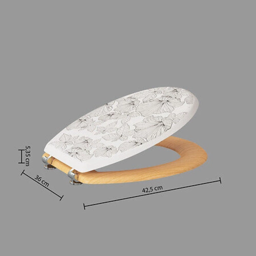 Jedinečný rostlinný motiv na černém podkladu upoutá pozornost a dodá koupelně výjimečný charakter. Toto WC sedátko je nejen praktickým prvkem vybavení, ale také stylovým detailem, který snadno sladíte s moderním designem interiéru. Výrobek má certifikaci FSC, což potvrzuje ekologickou šetrnost použitých materiálů.