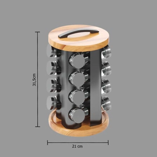 Otočný kořenkový stojan na 16 skleniček, akáciové dřevo