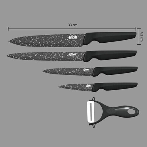 Sada kuchyňských nožů Caractere 5five černá s škrabkou na zeleninu a ovoce