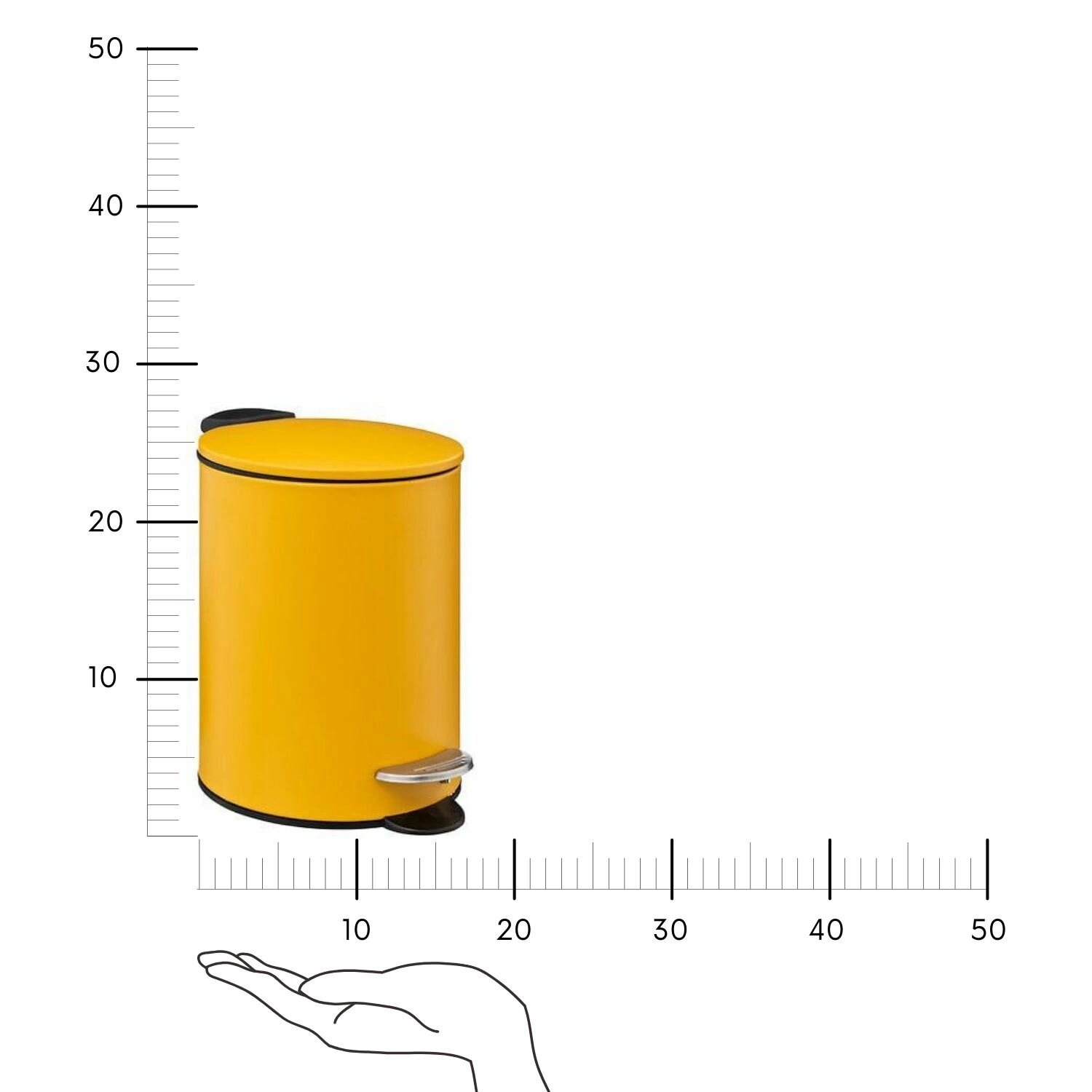 Koš na odpadky do koupelny 3L Colors od značky 5five simply smart je kompaktní, žluté řešení, které spojuje moderní design s pohodlím každodenního používání. Vyrobený z pevné oceli a odolného plastu, vybavený praktickým pedálem a systémem tichého zavírání. Kulatý tvar a malé rozměry (výška 25,5 cm, šířka a hloubka 17 cm) zaručují, že se skvěle vejde i do omezených prostor koupelny, kuchyně nebo kanceláře.