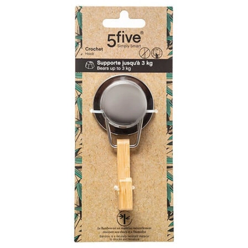 Nástěnný koupelnový háček Venterra značky 5five simply smart je stylovou kombinací přírodního bambusu a elegantního, chromovaného kovu, která přináší do koupelny oblíbený boho styl s nádechem rustikální útulnosti. Kulatý tvar, kompaktní rozměry (výška 15,9 cm, šířka 6 cm, hloubka 7,2 cm) a inovativní montáž na přísavku dělají z tohoto nástěnného věšáku nejen praktické, ale i dekorativní řešení pro každý interiér. Zapomeňte na vrtání a trvalé zásahy do stěn – s tímto háčkem získáváte flexibilitu a ochranu povrchů.