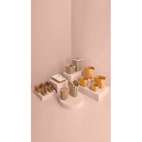 Jedinečnost koše Terre Inconnue spočívá v jeho designu a univerzálním využití. Pletená konstrukce z papírového provázku v přírodním odstínu dokonale ladí s černými detaily kovového rámu a vytváří výrazný, a přitom harmonický prvek do boho, skandinávských nebo eklektických interiérů. Díky čtvercovému tvaru a kompaktním rozměrům se koš snadno vejde na polici, do skříně nebo vypadá elegantně i na podlaze jako dekorativní prvek.