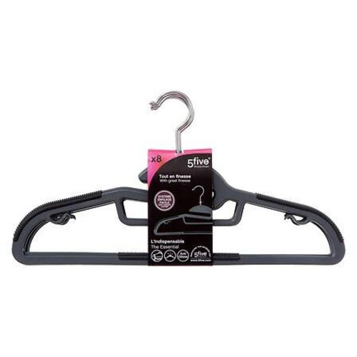 Sada 8 šedých protiskluzových ramínek značky 5five simply smart je praktickým a stylovým řešením pro každou šatnu nebo skříň. Každé ramínko je vyrobeno z odolného kovu a opatřeno silikonovým povrchem, který účinně zabraňuje sklouzávání oblečení. Šířka 41 cm umožňuje pohodlně zavěsit nejen košile, ale také kalhoty či šaty. Sada je ideální pro každodenní použití, udrží váš šatník v pořádku a ochrání oblečení před pomačkáním.