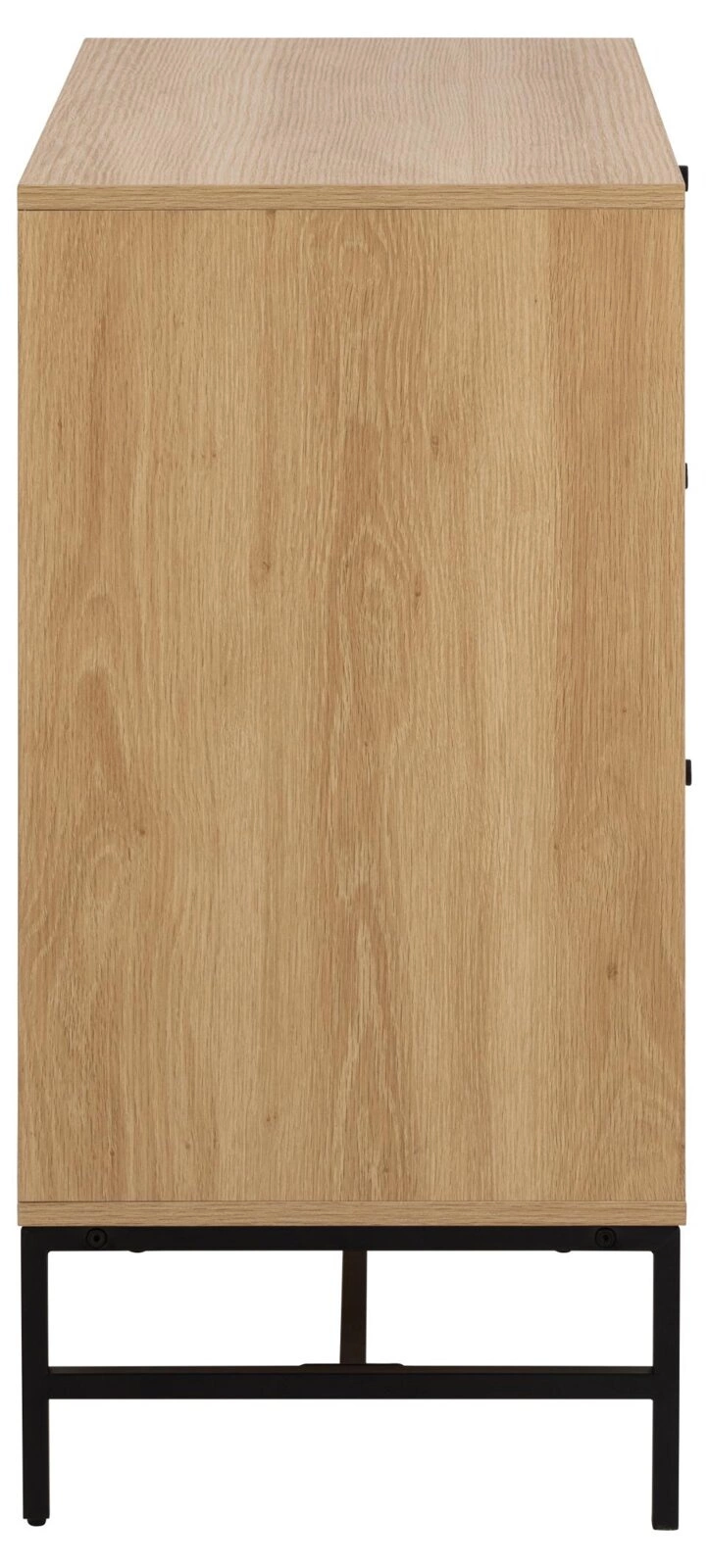 Komoda Albany skvěle zapadne do minimalistických, moderních i loftových interiérů. Typický drážkovaný předek dodává originalitu a eleganci, přitahuje pozornost a oživuje prostor. Přírodní dub s jemně polomatnou povrchovou úpravou působí vkusně a univerzálně – hodí se jak do světlých, skandinávských aranžmá, tak i do industriálnějších prostor. Černá ocelová podstava vnáší lehkost a kontrast, čímž zdůrazňuje designový charakter této komody.