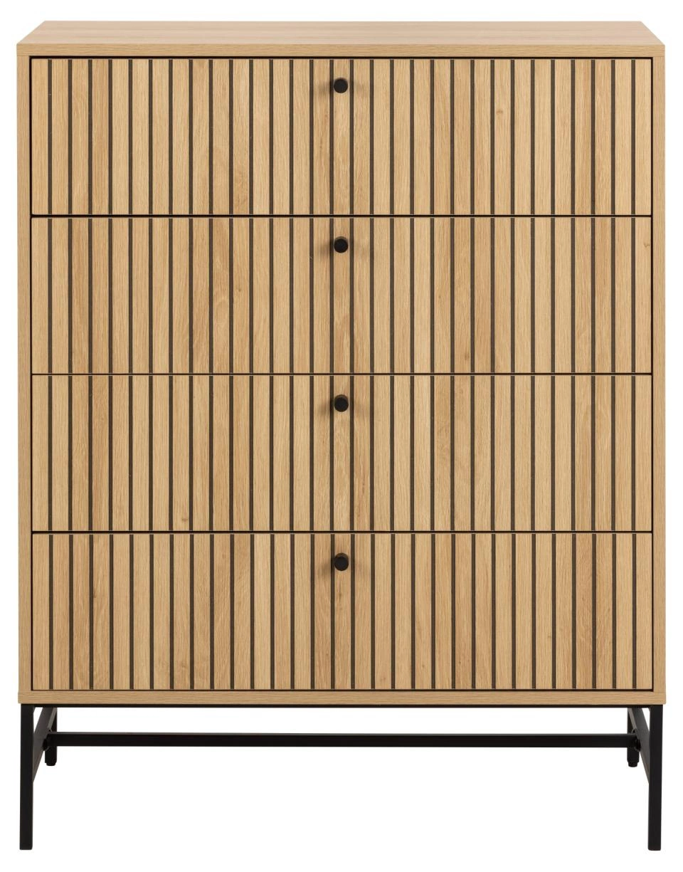 Komoda Albany 4 zásuvky od značky Actona je moderní rýhovaná komoda v odstínu přírodního dubu o šířce 80 cm a výšce 100 cm. Tento model vyniká čely s jemným rýhováním, černými ocelovými nohami a čtyřmi prostornými zásuvkami, které poskytují pohodlný úložný prostor do obývacího pokoje, předsíně nebo pracovny. Stabilní konstrukce a snadno udržovatelná horní deska s přírodní dýhou zaručují, že Albany propojuje funkčnost s designovým stylem a perfektně zapadne do moderních interiérů.