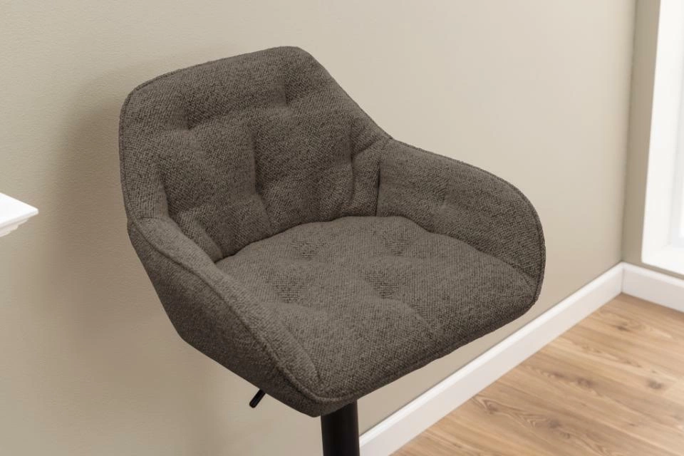 Brooke je více než jen barová židle – je to záruka komfortu při každodenních setkáních i ranní kávě. Opěradlo a područky poskytují stabilní a pohodlnou pozici i při delším sezení. Nastavitelná výška sedadla (od 79 cm) umožňuje přesné přizpůsobení hokeru výšce pracovní desky nebo ostrůvku a zajišťuje tak optimální pohodlí pro každého člena domácnosti. Otočné sedadlo usnadňuje komunikaci – nemusíte vstávat, abyste dosáhli na šálek nebo si povídali s hosty.