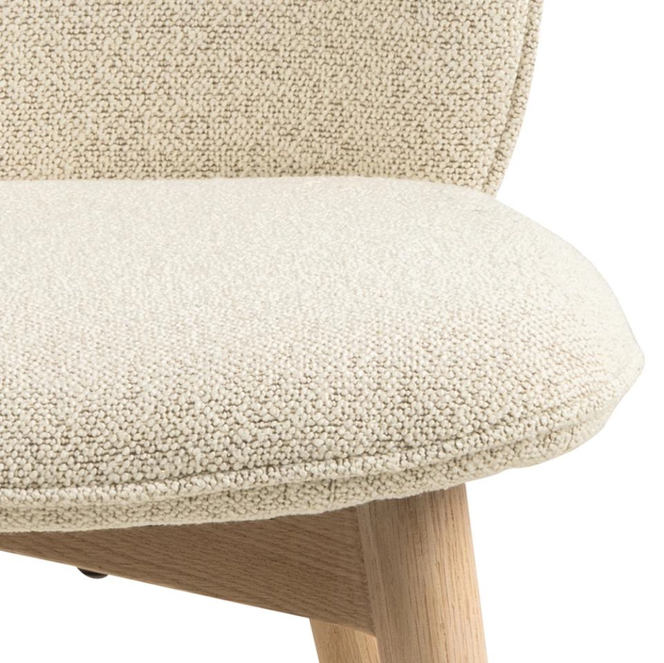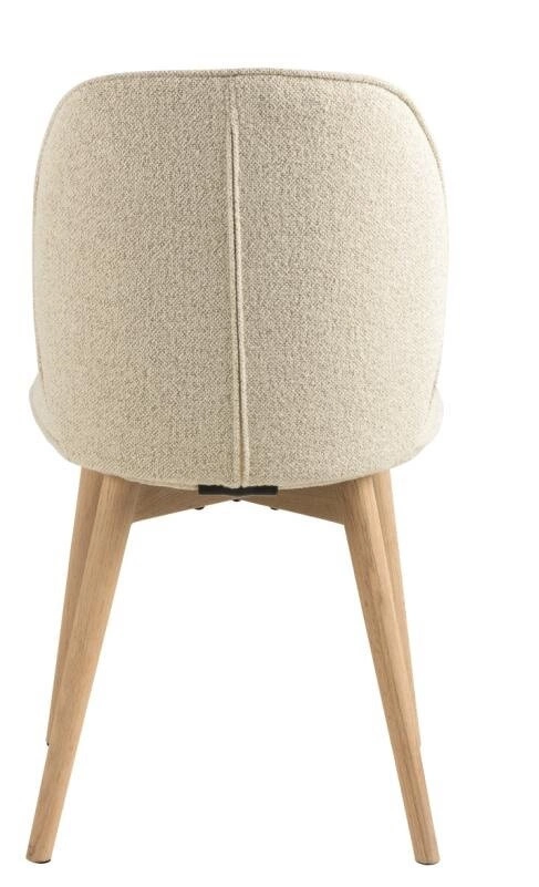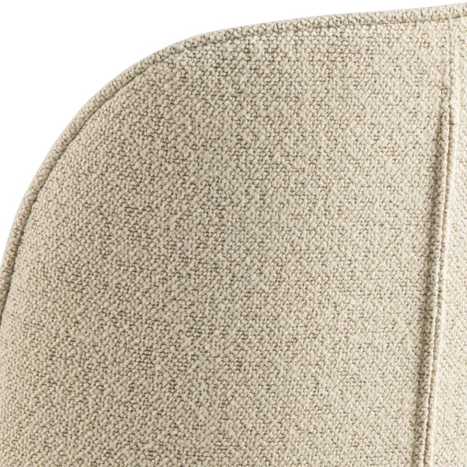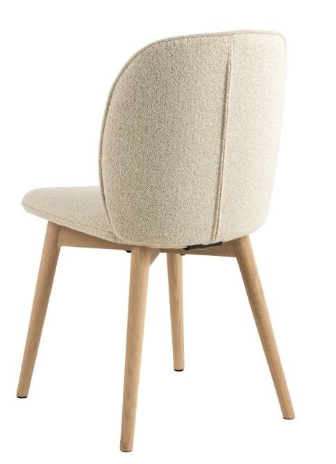 - Bouclé čalounění v béžové barvě – měkké, příjemné na dotek a snadno se udržuje, takže židle si zachová elegantní vzhled po dlouhou dobu.
