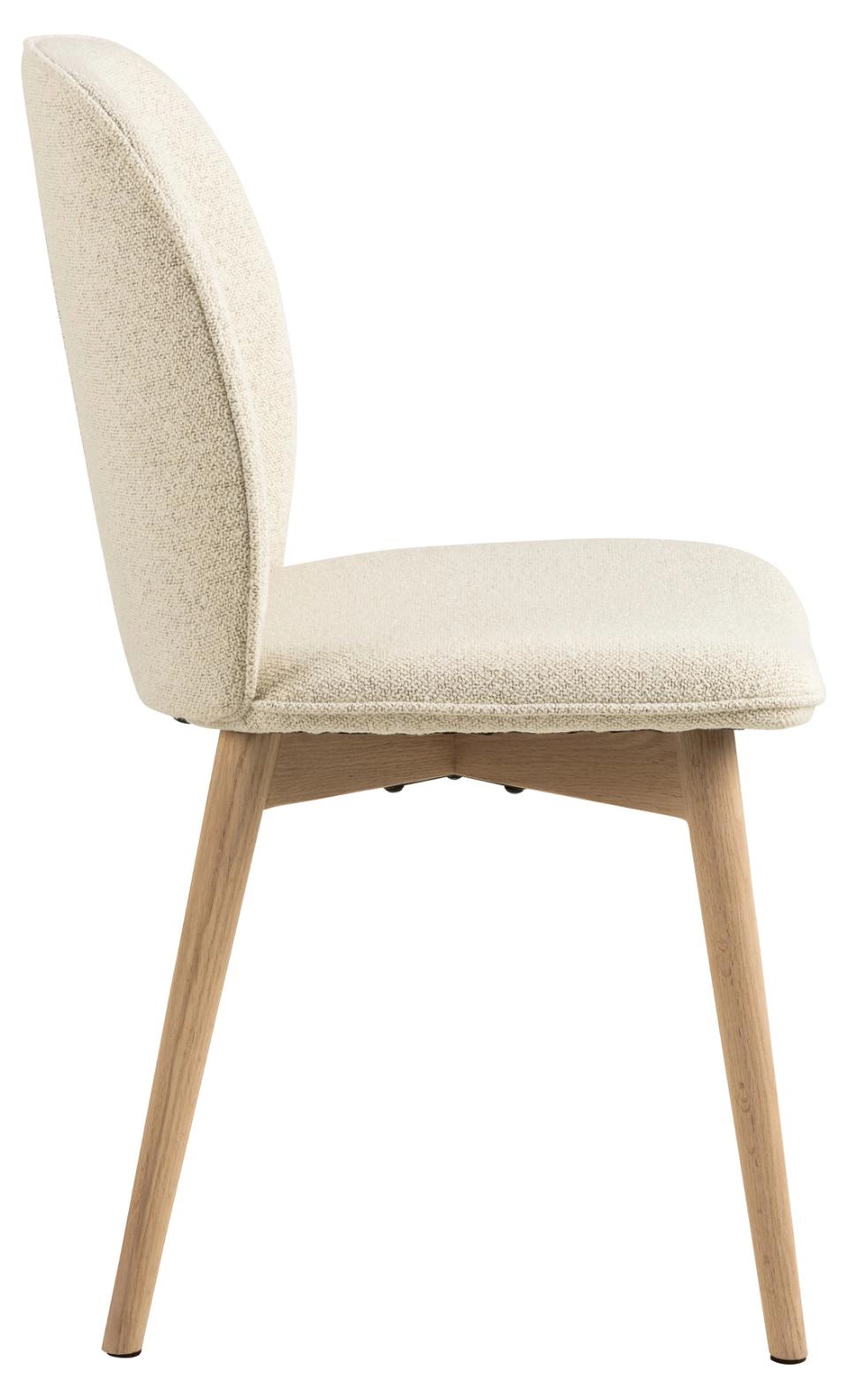 Židle Cindy zaujme jemným designem a světlými barvami typickými pro skandinávský styl. Přírodní bělené kaučukové dřevo podtrhuje útulnou atmosféru, zatímco béžové bouclé čalounění dodává celku teplo a měkkost. Toto spojení zaručuje, že sametová židle (bouclé) harmonicky ladí jak se světlými, minimalistickými interiéry, tak s moderními prostory, kde je kladen důraz na pohodlí a estetiku.