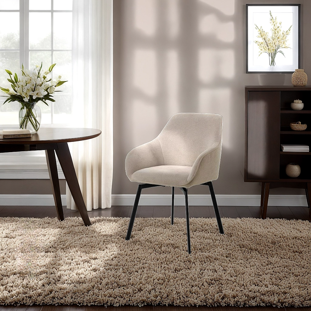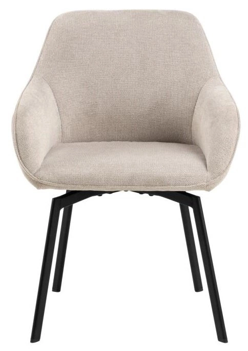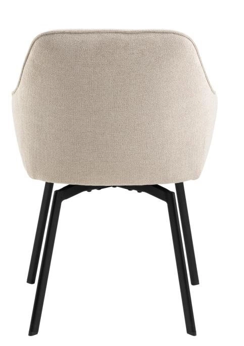 Otočená čalouněná židle Clara Actona je spojením moderní elegance a každodenní praktičnosti. Béžový sedák z měkké látky, podpořený pevnou černou kovovou základnou, zajišťuje pohodlí jak v jídelně, tak v obývacím pokoji. Tento model je vybaven ergonomickými područkami, otočným mechanismem a komfortními rozměry: šířka 58,5 cm, hloubka 55,5 cm a výška 83,5 cm.