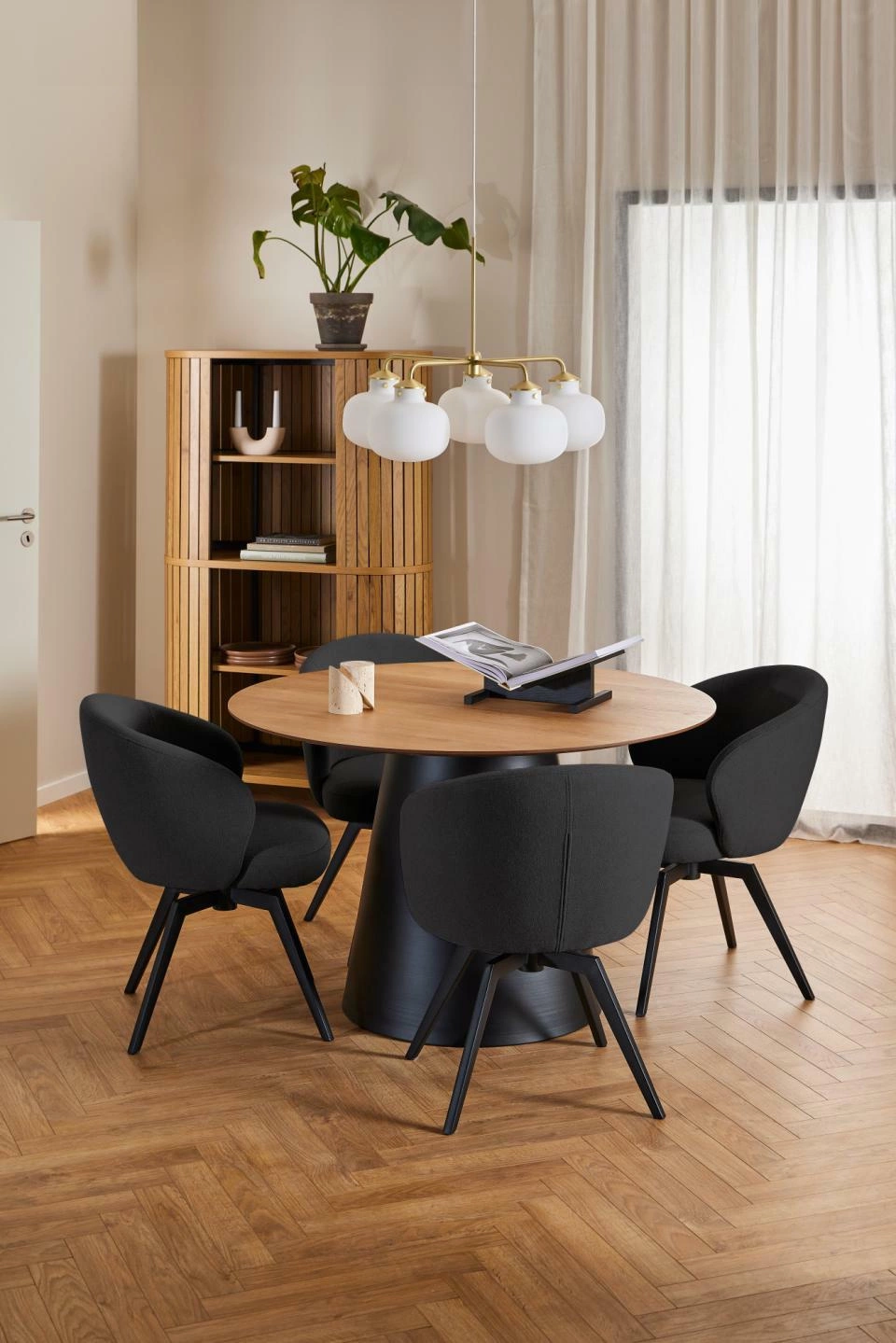 Židle Darlene Actona je vybavena otočnou funkcí, která výrazně zvyšuje komfort – u stolu se můžete snadno otáčet bez nutnosti přesouvání židle. Toto řešení ocení jak členové domácnosti, tak hosté, zejména při rodinných setkáních nebo při práci na počítači. Další výhodou jsou vysoké nohy, díky nimž se pod židli snadno dostane robotický vysavač, což usnadňuje úklid v místnosti.