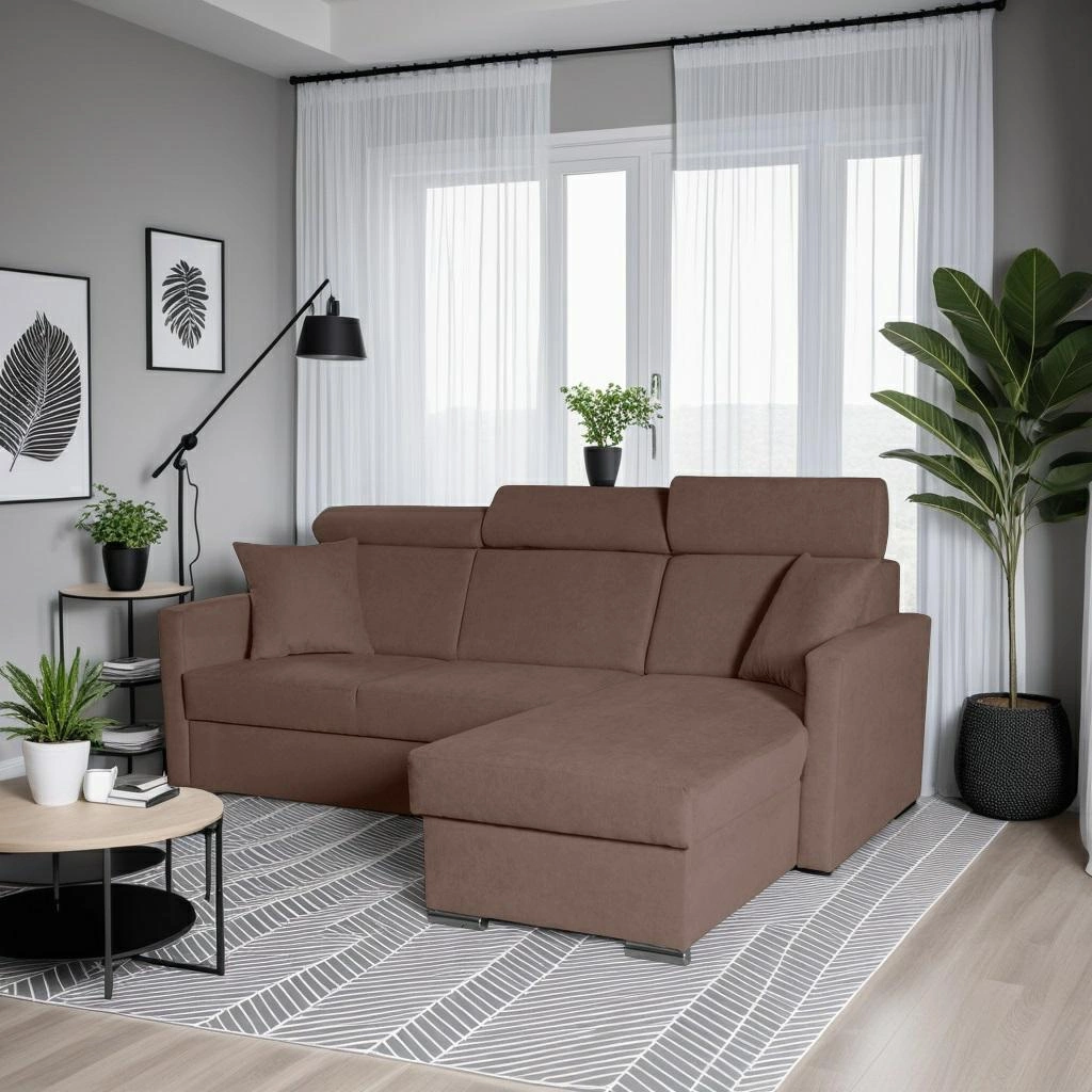 Rozkládací rohová sedačka Mils hnědá je kombinací pohodlí, moderního vzhledu a praktických funkcí, které ocení každý, kdo má rád pořádek a komfort v každodenním životě. Vyberte si stylovou rozkládací sedačku do obýváku a přesvědčte se, jak může proměnit váš domov.