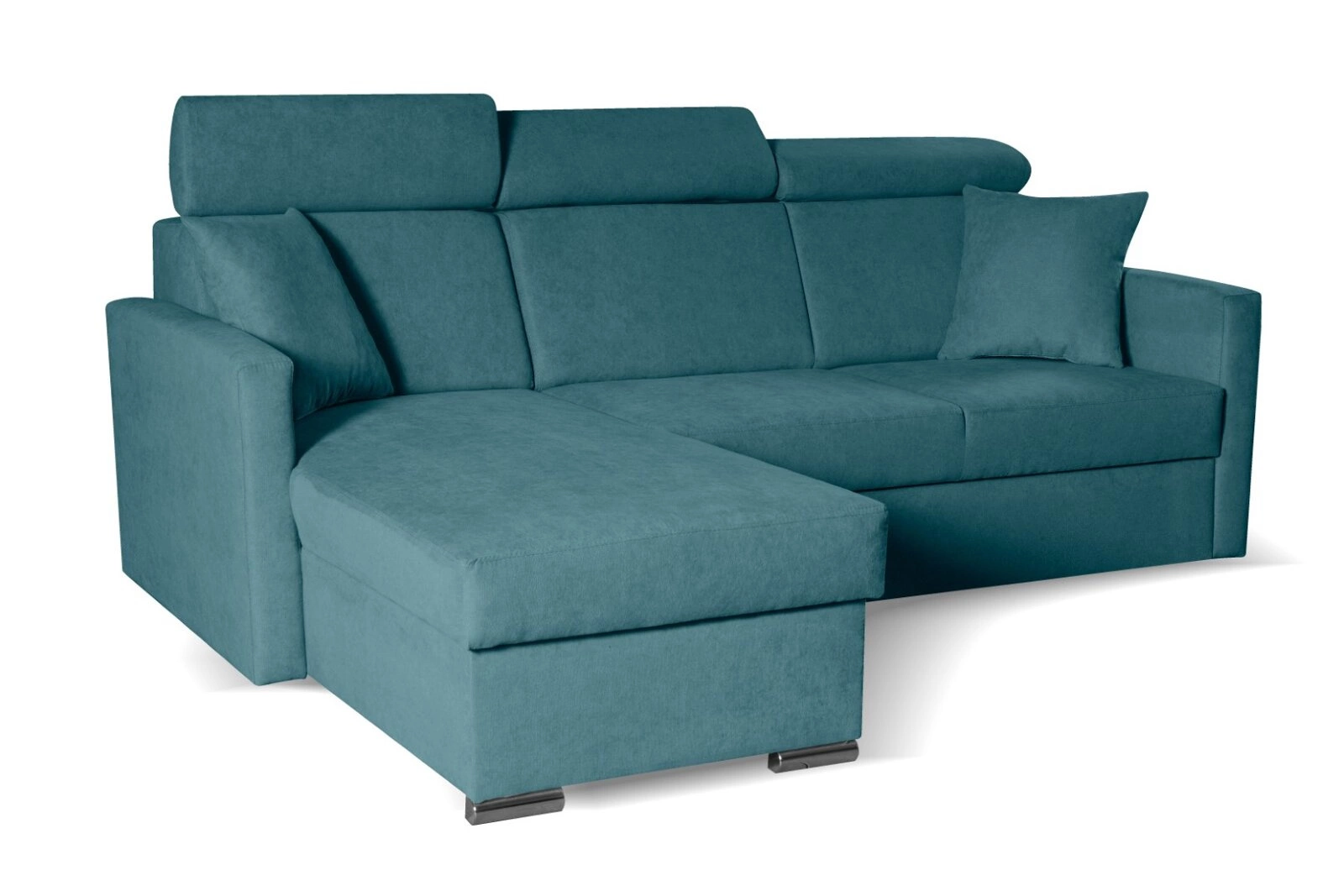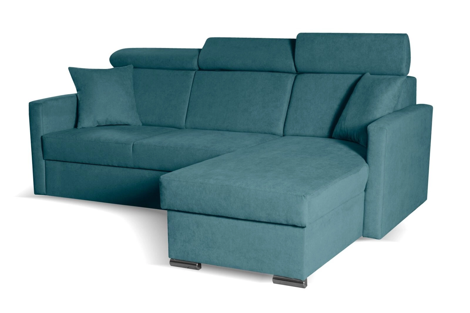 Rohová sedačka s rozkládací funkcí Mils morski od značky Intesi je moderní, rozkládací nábytek do obývacího pokoje, který spojuje sametový povrch s praktickým úložným prostorem na lůžkoviny. Se šířkou 215 cm, hloubkou 164 cm a plochou na spaní 120x195 cm nabízí pohodlí jak pro každodenní odpočinek, tak i pro noční spánek. Její výrazná mořská barva dodává interiéru svěžest a jedinečný charakter.